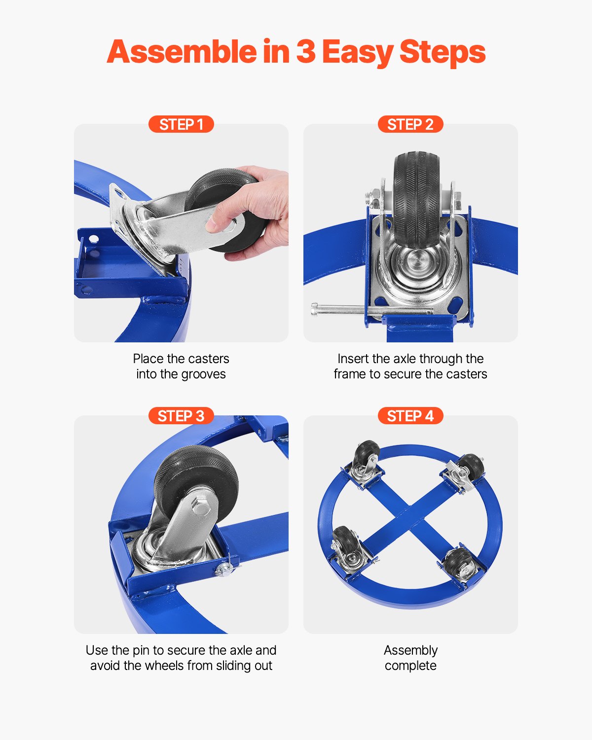 VEVOR valjak za bubnjeve za 55 galona, nosivost 907 kg, transportni valjak Ø615×188 mm s prečkama i… 4 okretna kotačića, kolica otporna na prevrtanje za rukovanje bačvama u skladištima, plava