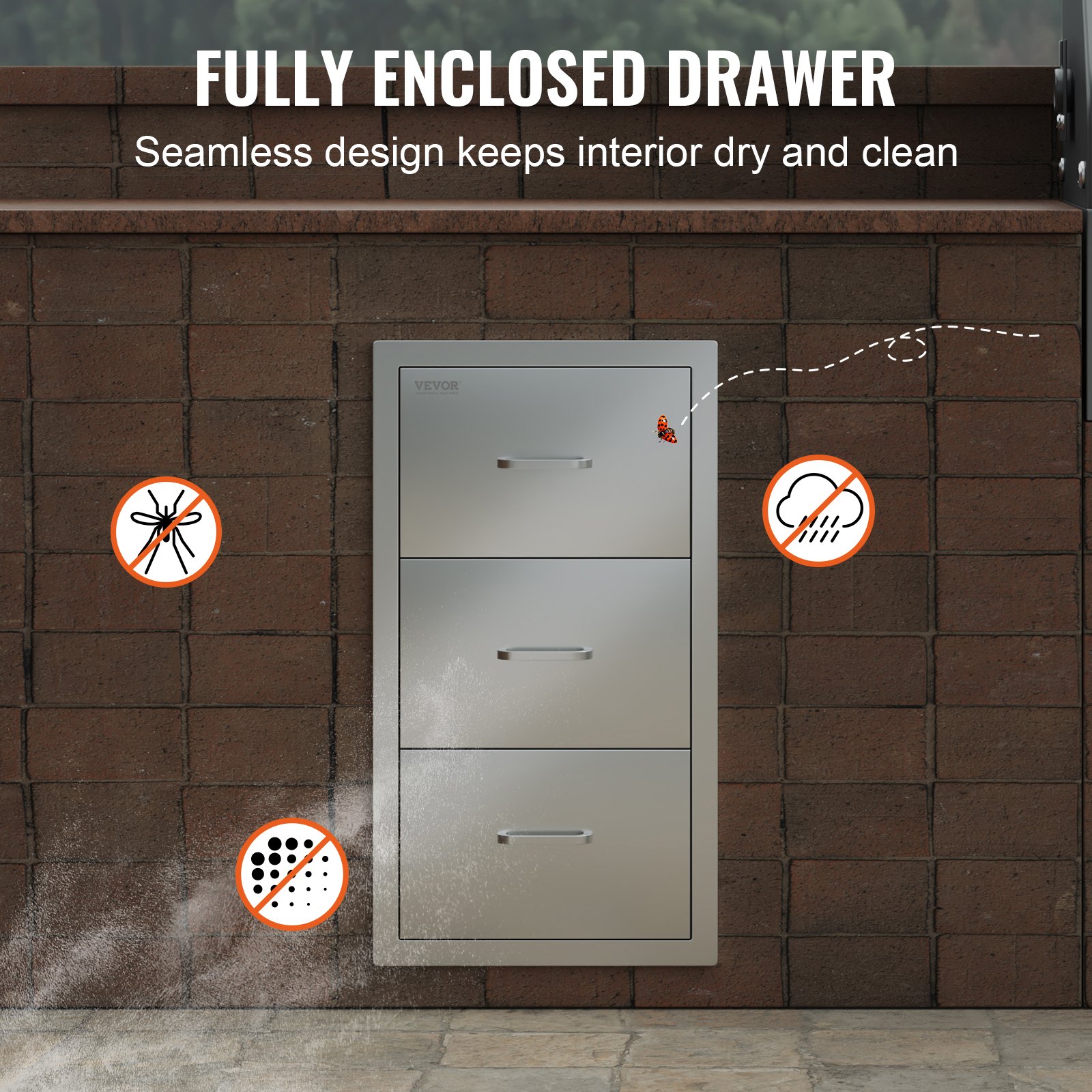 VEVOR Vanjske kuhinjske ladice 42,7 cm Š x 72,5 cm V x 52,7 cm D, Ugradbene ladice za roštilj od nehrđajućeg čelika s trostrukim pristupom i ručkom, Ladice s otočnim roštiljem za vanjske kuhinje ili vrtne roštilje