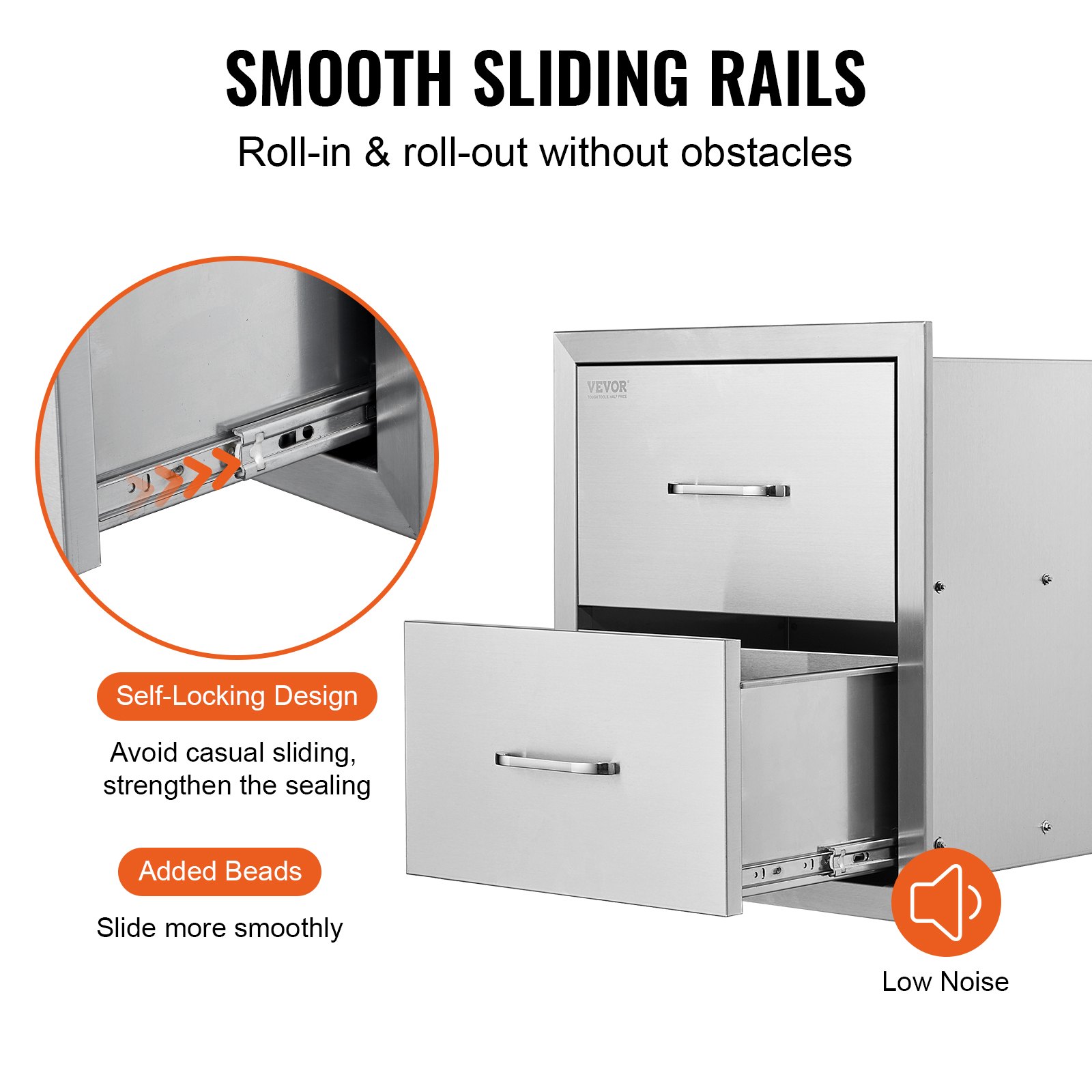 VEVOR Vanjske kuhinjske ladice, Ugradbene dvostruke ladice za roštilj od nehrđajućeg čelika s ručkom, Ladice s otočnim roštiljem za vanjske kuhinje ili vrtne roštilje, 451 x 514 x 310 mm