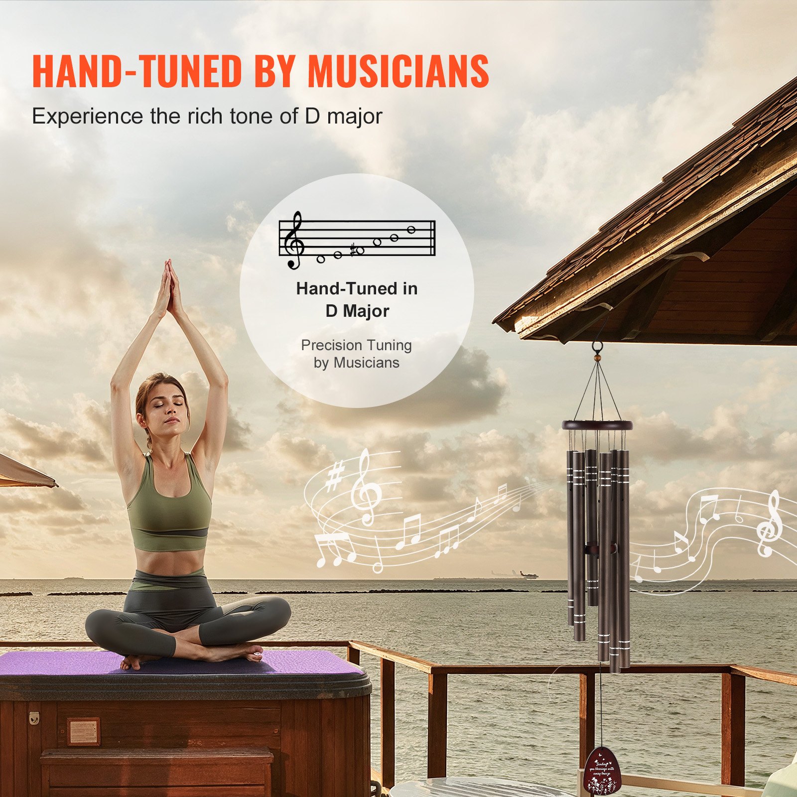 VEVOR Vanjsko vjetreno zvono, 42 inča, vjetreno zvono dubokog tona sa 6 cijevi, jedinstveno veliko vjetreno zvono u spomen na godišnjicu, izvrstan vanjski ukras za vašu terasu, trijem, vrt i dvorište, tamnosmeđa