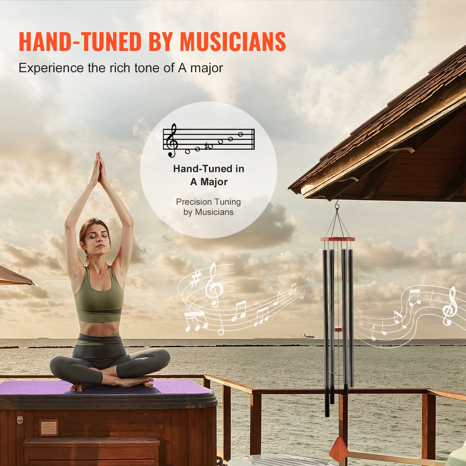 VEVOR Vanjsko vjetreno zvono, 60 inča, vjetreno zvono dubokog tona sa 6 cijevi, jedinstveno veliko vjetreno zvono u spomen na godišnjicu, izvrstan vanjski ukras za vašu terasu, verandu, vrt i dvorište, crno