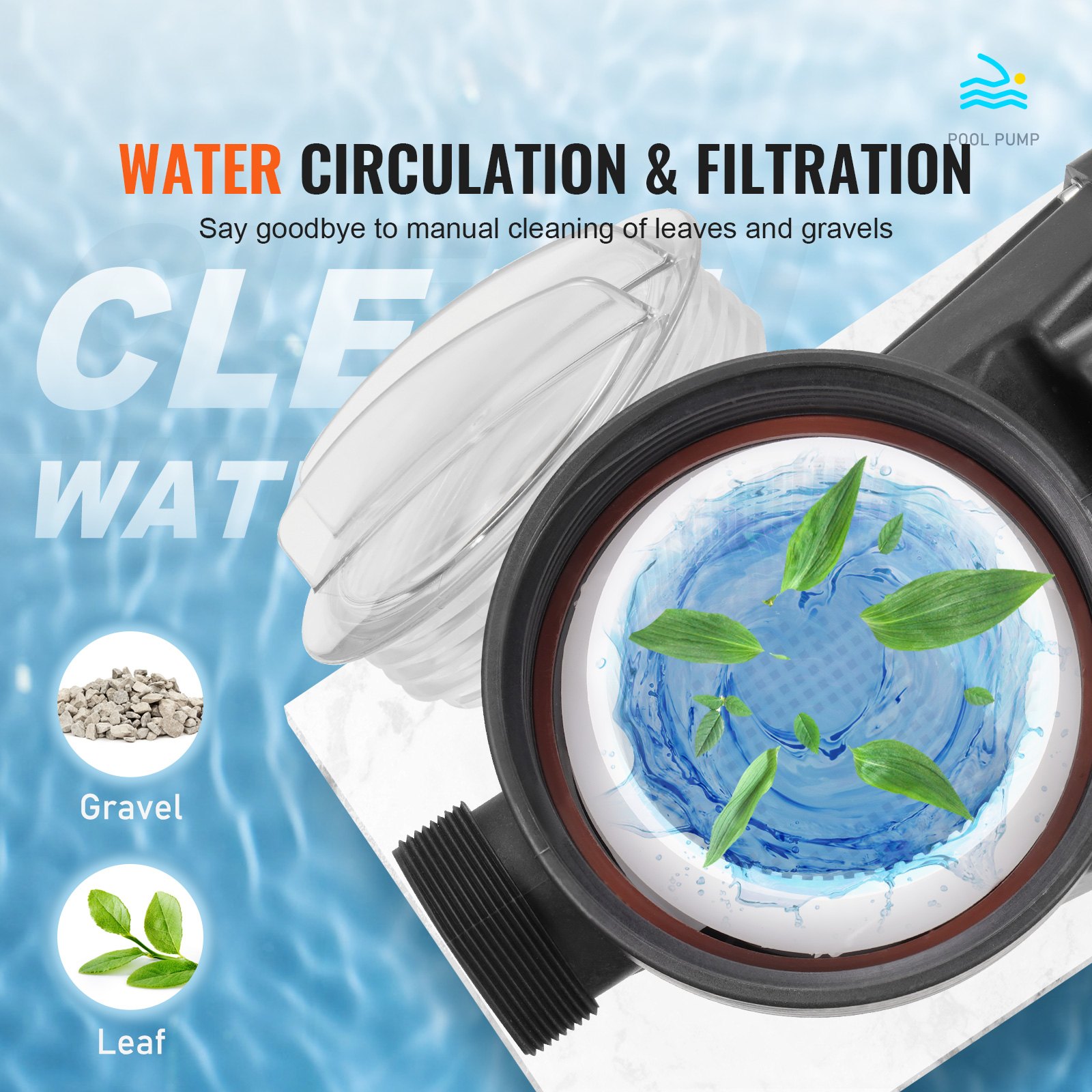VEVOR Nadzemna pumpa za bazene 1,5 KS, 220 V-240 V, 1450/2860 o/min, dvostruka brzina, 1100 W, maksimalni protok 27800 l/h, snažna pumpa, energetski štedljiva pumpa za nadzemne bazene, CE certifikat