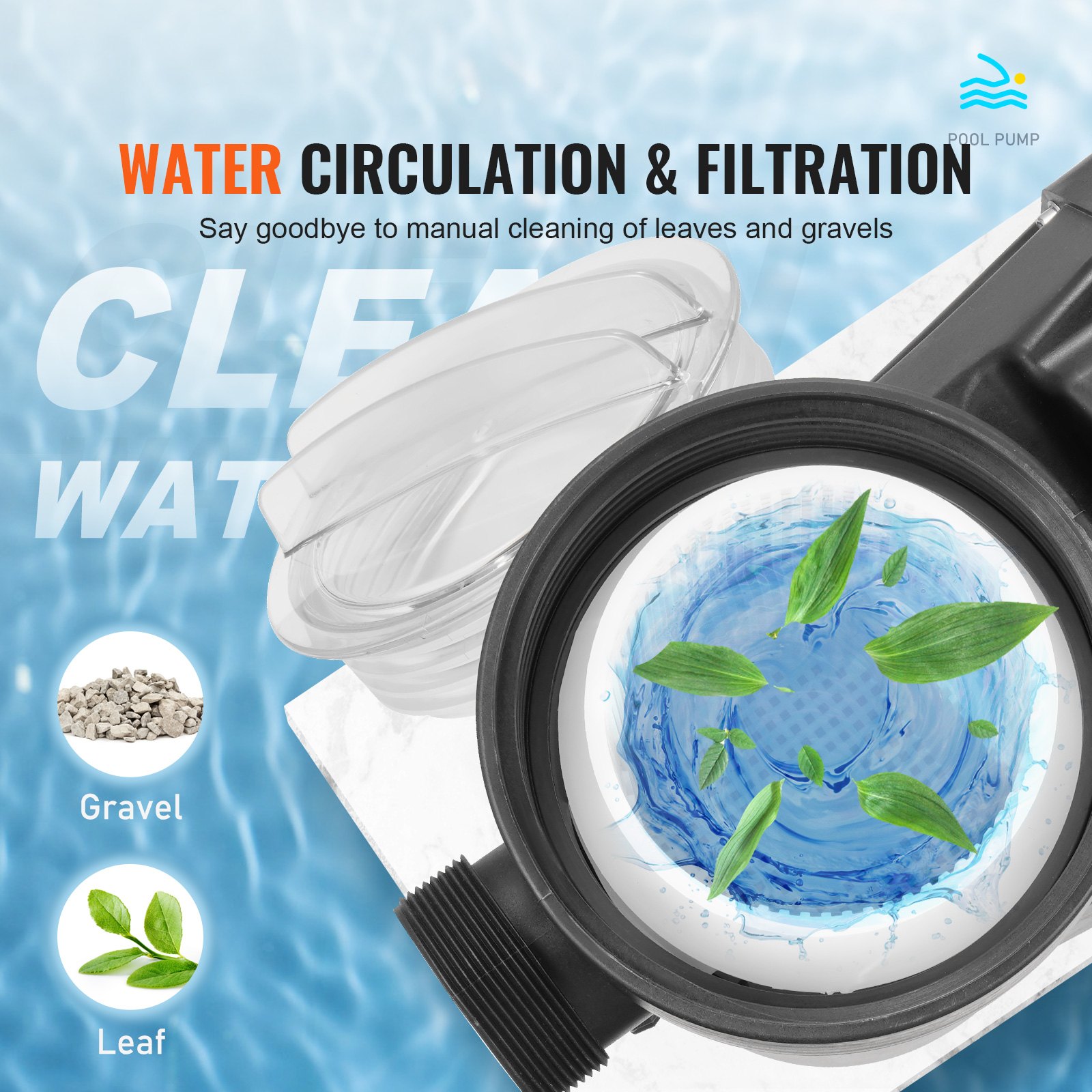 VEVOR Nadzemna pumpa za bazene od 2 KS, 220 V-240 V, 1450/2860 okretaja u minuti, dvostruka brzina, 1800 W, maksimalni protok od 33000 l/h, snažna pumpa, energetski štedljiva pumpa za nadzemne bazene, CE certifikat