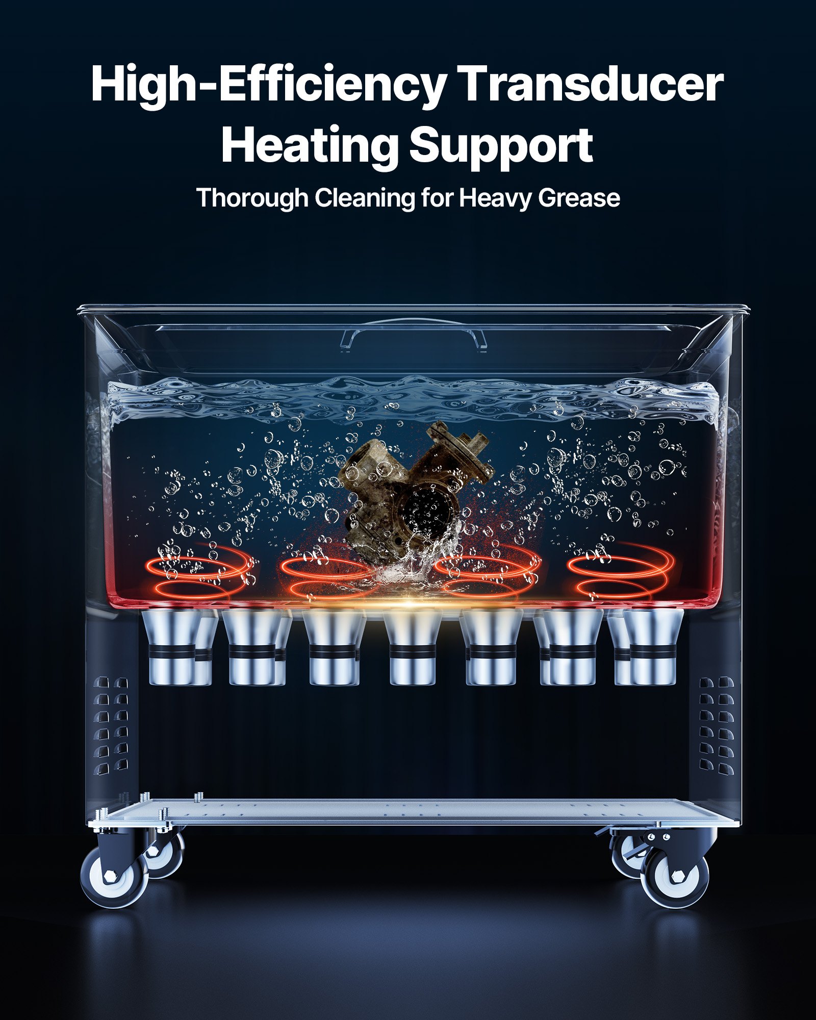 VEVOR 50 L Ultrazvučni čistač, Profesionalni ultrazvučni stroj za čišćenje s košarom za čišćenje i digitalnim zaslonom, Stroj za čišćenje od nehrđajućeg čelika 40 kHz snage 840 W s kotačima za dijelove, rasplinjače i instrumente