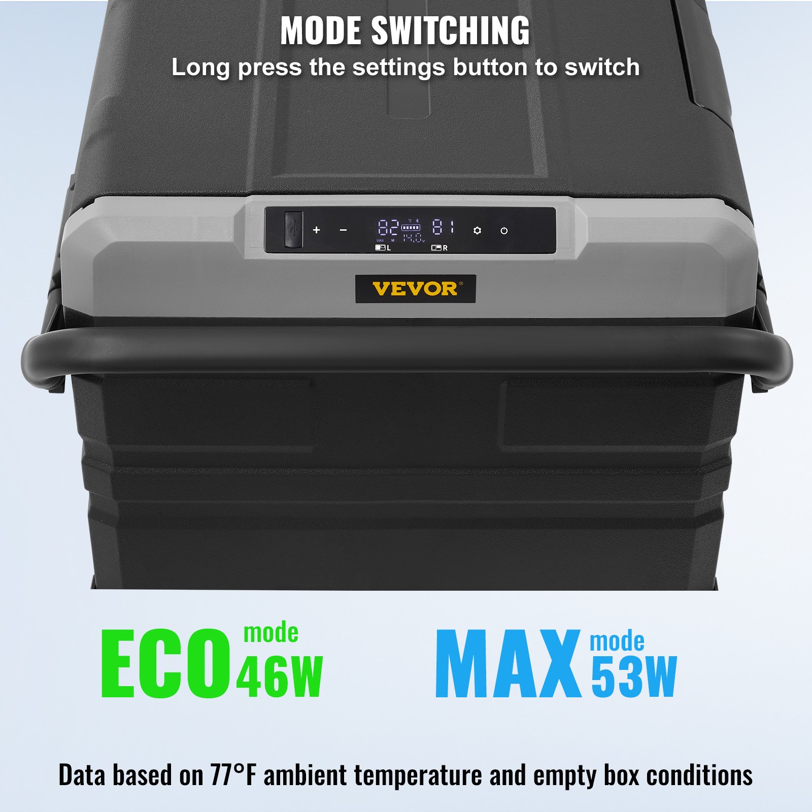 VEVOR Auto hladnjak, 12-voltni automobilski hladnjak, prijenosni 95-litarski dvozonski zamrzivač s kotačima i ručkom, -20°C do 20°C, 12/24V DC i 100-240V AC, kompresorski hladnjak za vanjsku upotrebu, kampiranje