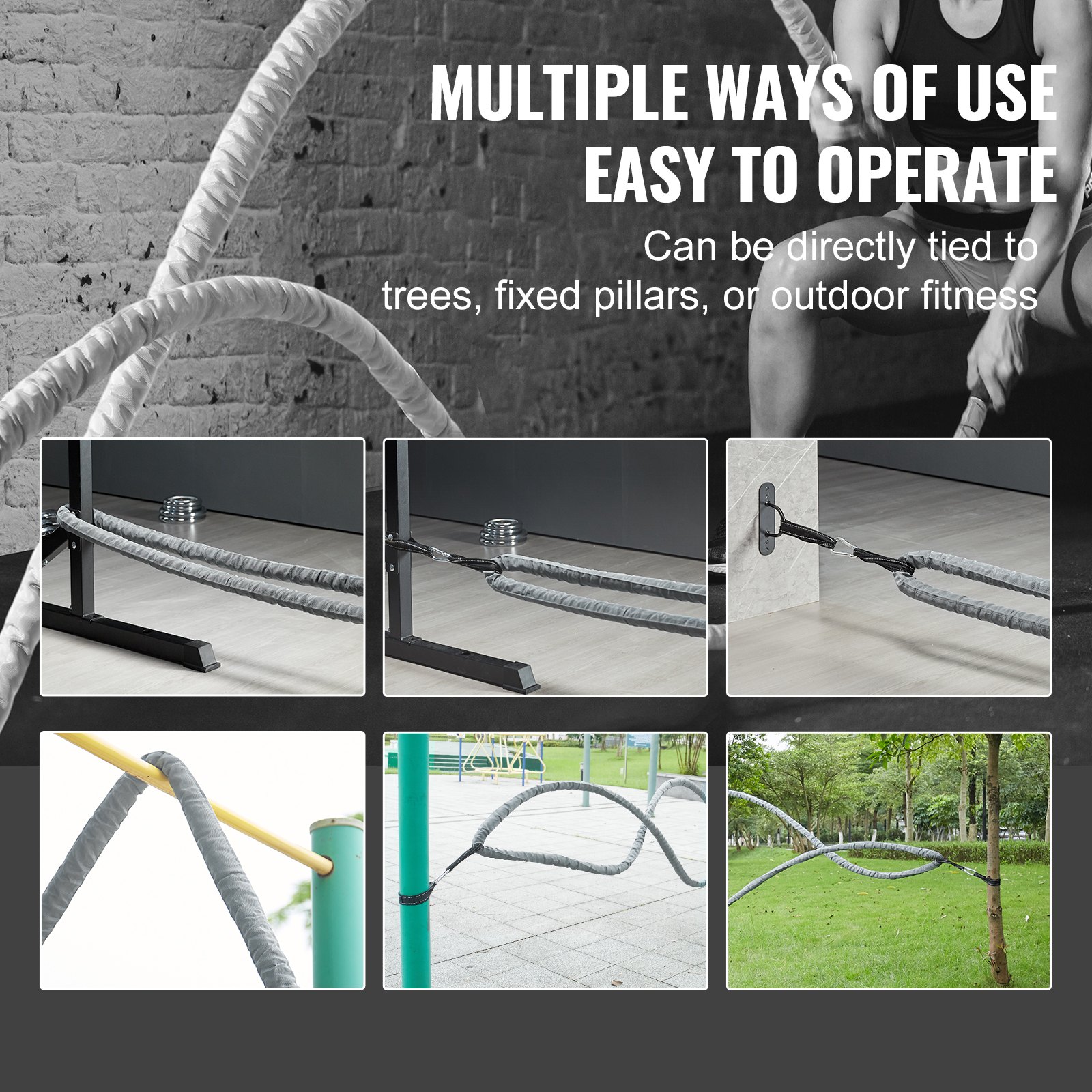 VEVOR uže za borbeno uže, promjer 3,8 cm, duljina 9 metara, poliestersko uže za trening, oprema za borbeni trening sa zaštitnim poklopcem i sidrom, teško uže za vježbanje u kućnoj teretani, trening snage trupa, sivo