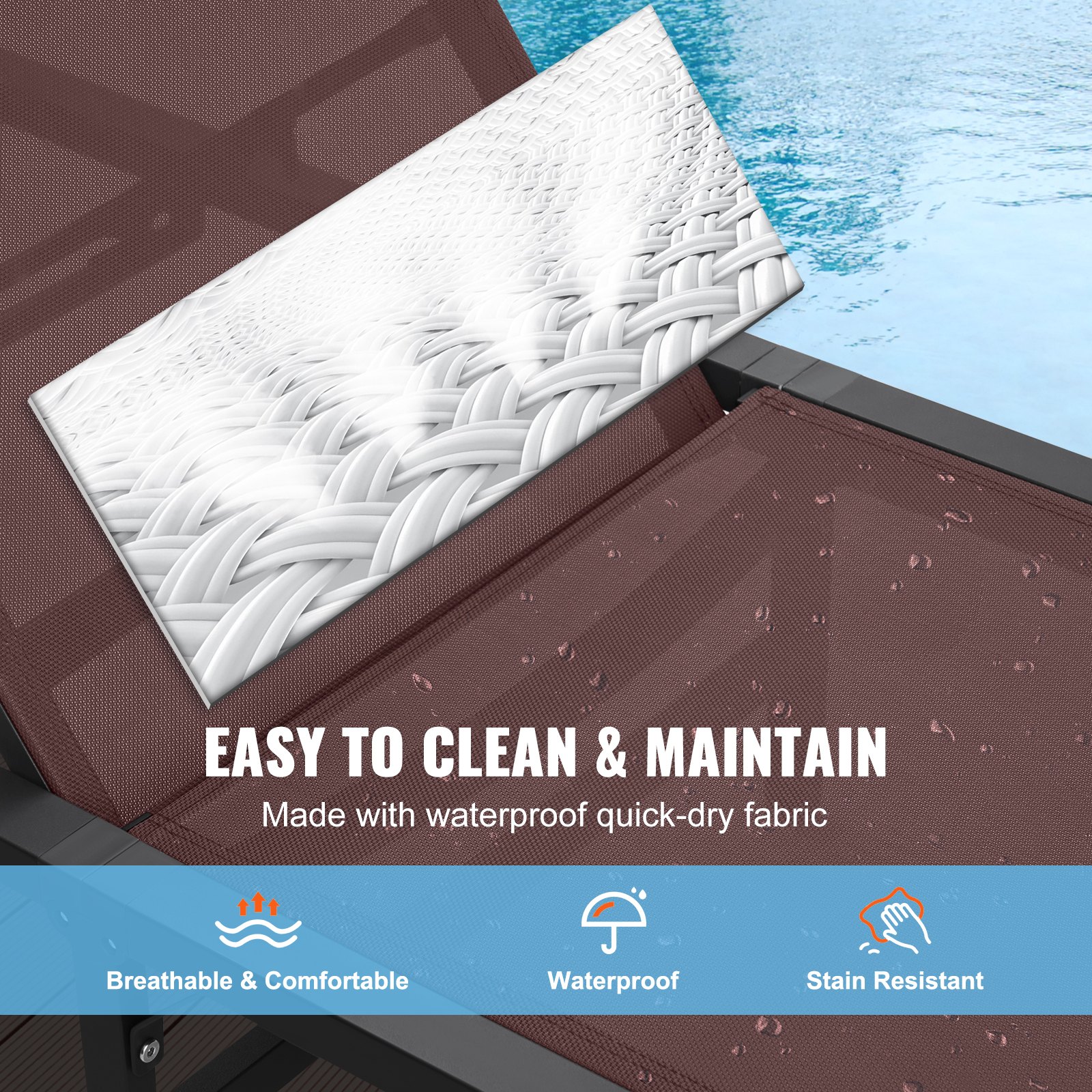 VEVOR vanjska ležaljka, aluminijska ležaljka za terasu s 5 podesivih položaja, sklopiva ležaljka za bazen, ležaljka za sunčanje i potpuno ravna ležaljka za terasu, plažu, bazen, smeđa