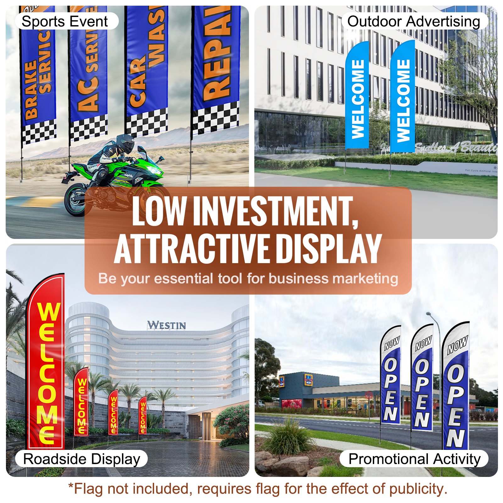 VEVOR Set jarbola za zastave s oprugom, Set jarbola za zastave s vjetrom 5 m, Jarboli za zastave za vanjske poslovne reklame, s šiljkom za tlo i torbom za nošenje (zastava nije uključena)