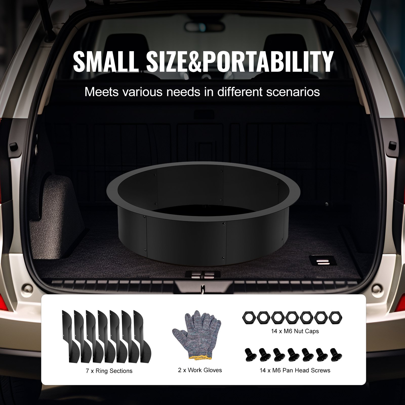 VEVOR prsten za vatru, vanjski promjer 91 cm / unutarnji promjer 86 cm, visoki uložak za vatru 25 cm, obloga od teškog ugljičnog čelika, DIY prsten za logorsku vatru za upotrebu iznad ili u zemlji, za kampiranje na otvorenom, logorske vatre