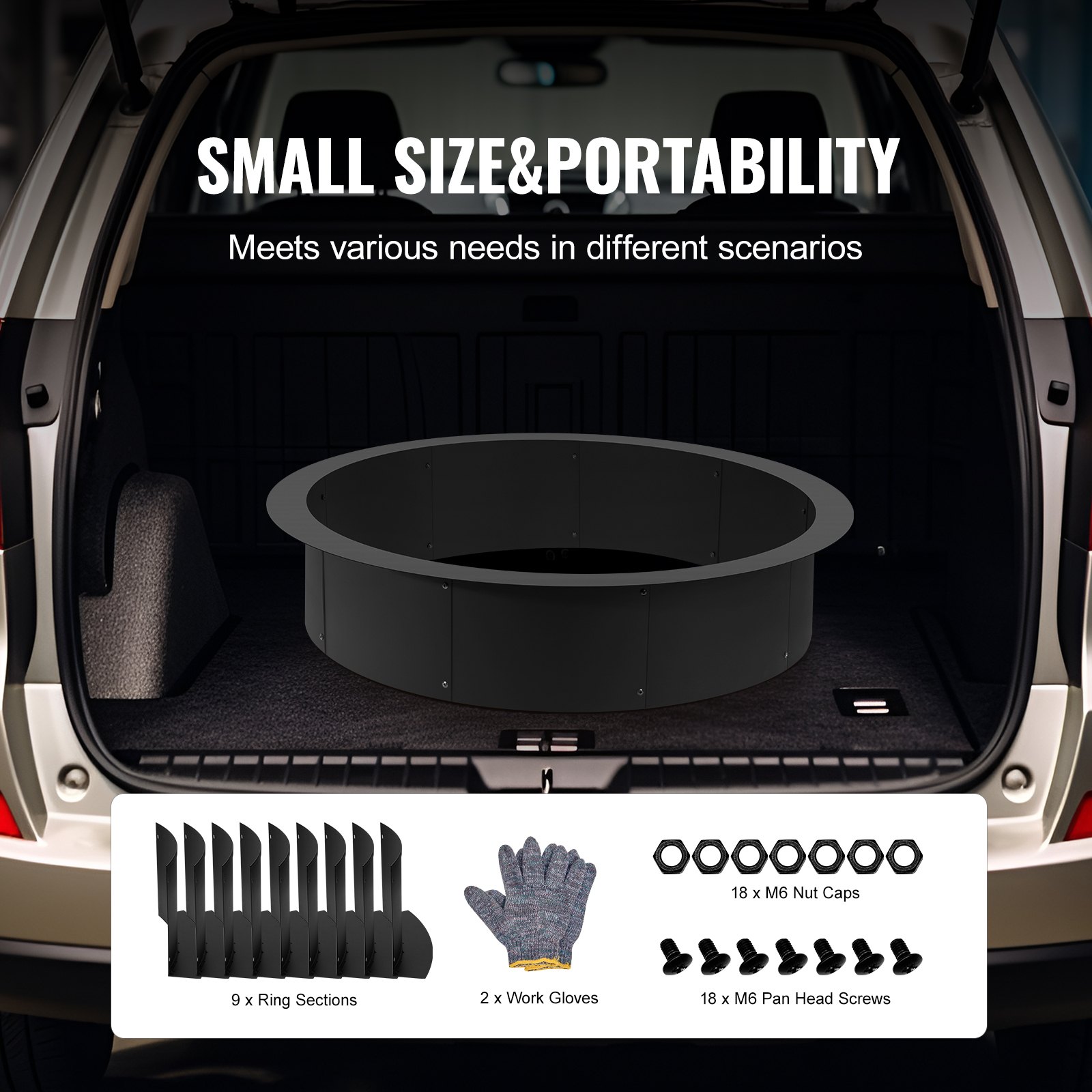 VEVOR prsten za vatru, vanjski promjer 44 inča/unutarnji promjer 39 inča, visina 10 inča, uložak za vatru debljine 2,5 mm, obloga od teškog ugljičnog čelika, DIY prsten za logorsku vatru za upotrebu iznad ili u zemlji, za kampiranje na otvorenom, logorske vatre