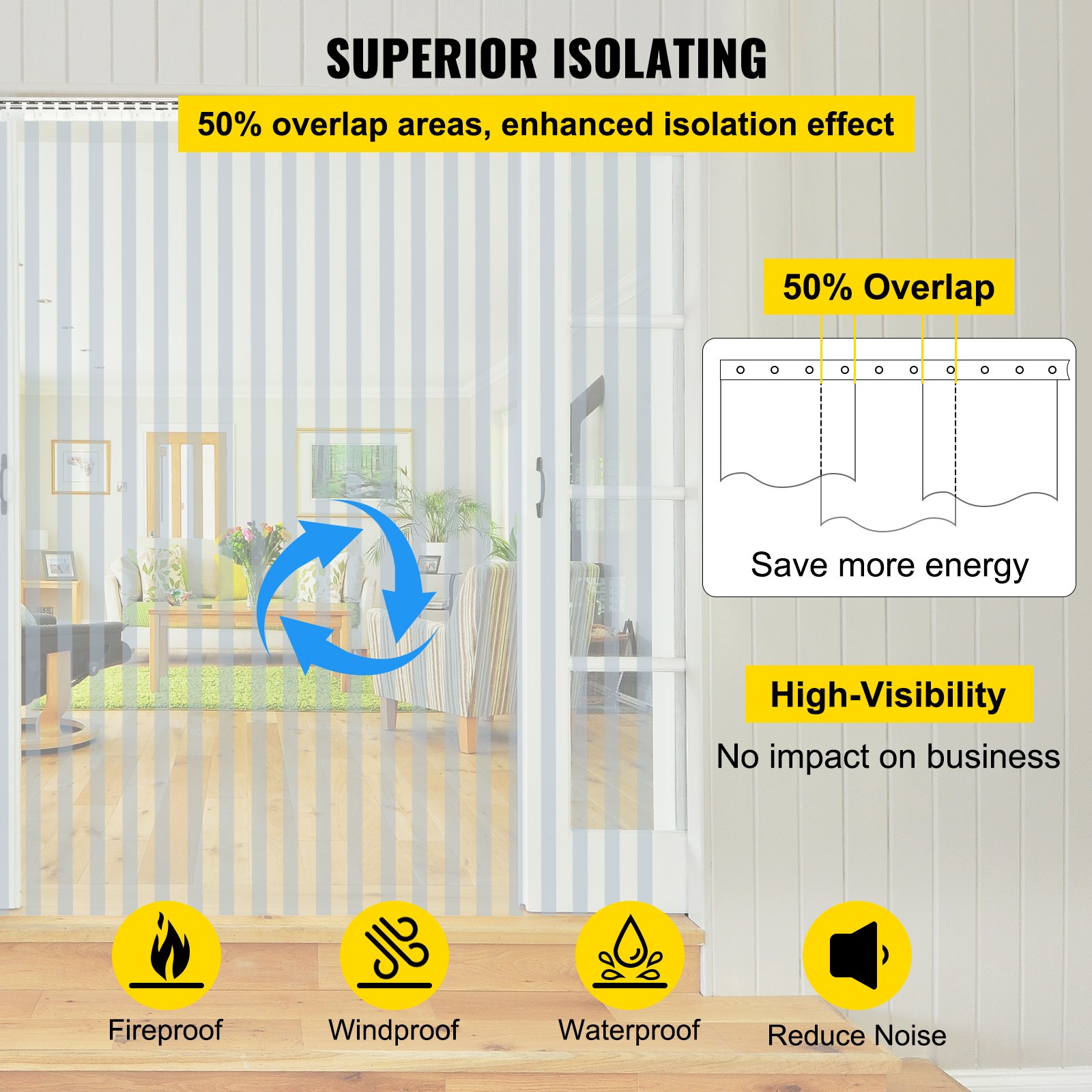 VEVOR PVC trakasta zavjesa 300 mm x 3 mm x 25 m Plastična zavjesa za vrata 64 lbs Rola zavjesa Prozirna Dekoracija Trgovine PVC trake