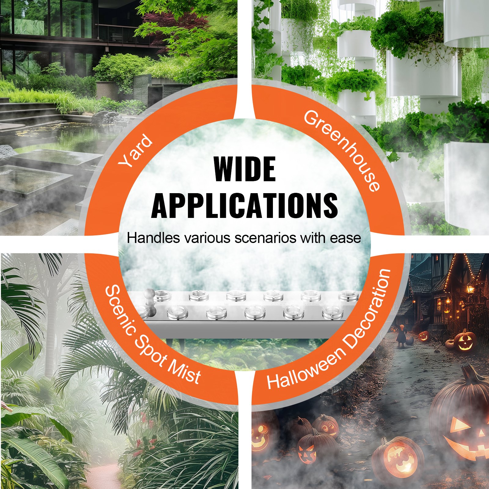 VEVOR ultrazvučni zamagljivač, 12 glava, ultrazvučni zamagljivač 9000 ml/h, stroj za maglu s vodootpornim napajanjem od 300 W IP67, plutača, zamjenski diskovi, za ribnjak, vrt, kamenjar, staklenik, ukras za Noć vještica