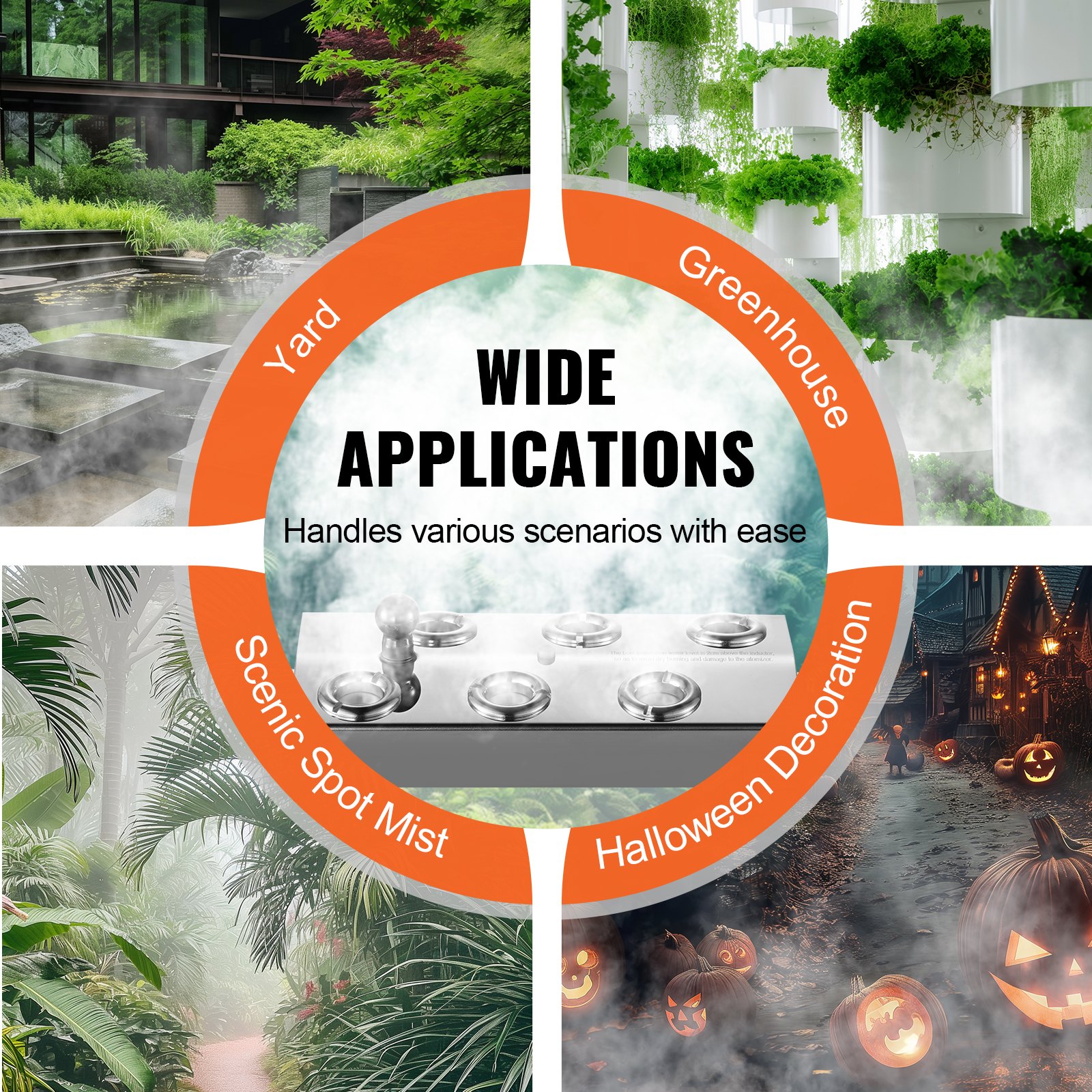 VEVOR ultrazvučni zamagljivač sa 6 glava, ultrazvučni zamagljivač 4500 ml/h, zamagljivač sa 165 W IP67 vodootpornim napajanjem, plutača, zamjenski diskovi, za ribnjak, vrt, kamenjar, staklenik, ukras za Noć vještica