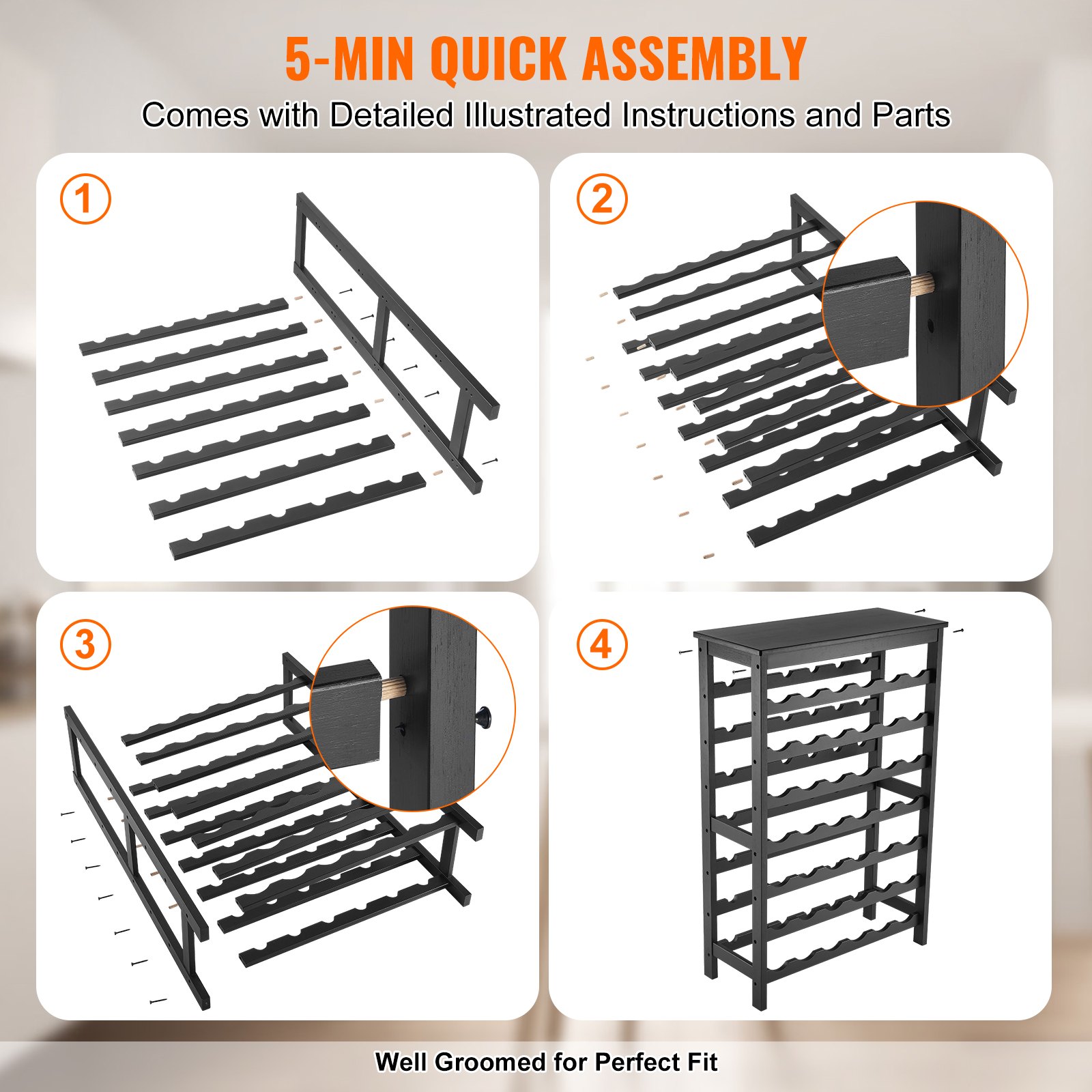 VEVOR stalak za vino za 42 boce, čvrsti stalak za boce, 7-slojna polica za pohranu izrađena od masivnog bambusovog drva, samostojeći stalak za vino, police koje se ne ljuljaju za kuhinju, bar i podrum (crni)