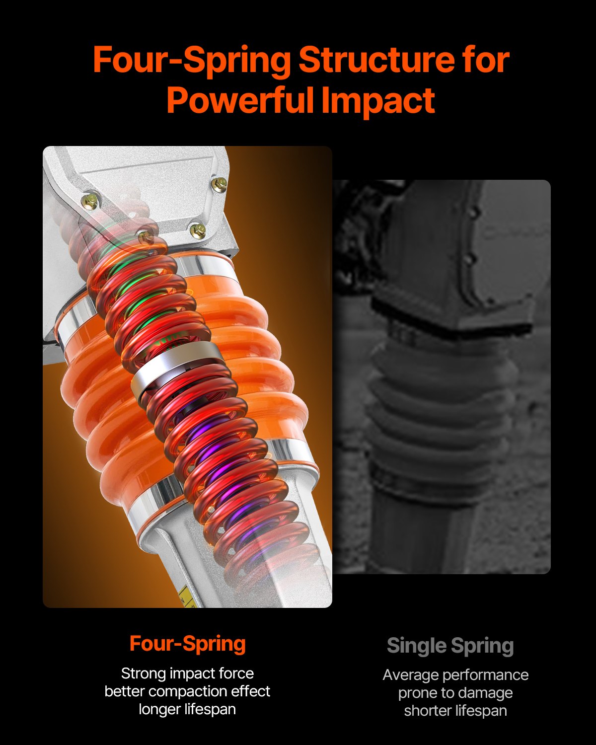 VEVOR Vibracijski nabijač od 6,5 KS, nabijač s motorom od 196 ccm na gorivo, udarna sila 1632 kg, maksimalna dubina zbijanja 66 cm, četiri opruge, nabijač za rovove za tlo, šljunak, betonske ploče, temelje
