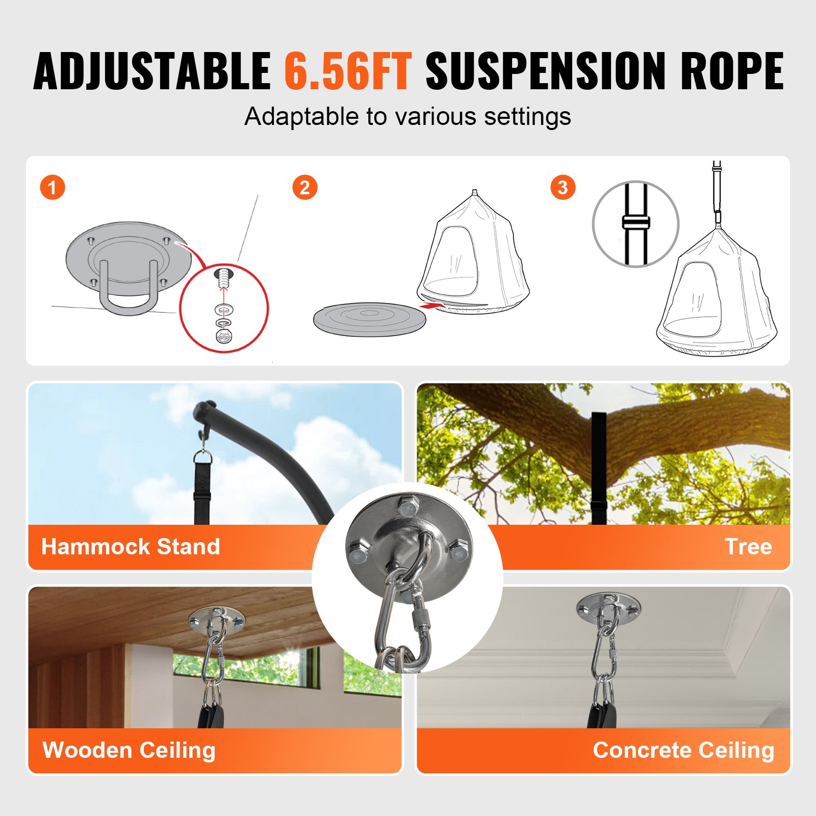 VEVOR Viseća špilja ø 70 x 160 cm Viseća stolica Nosivost 54 kg Višesjedna mreža za ležanje od pamučnog platna s LED svjetlima Viseće sjedalo Viseći šator Ljuljačka Terapeutska ljuljačka Viseća ljuljačka za djecu Zelena