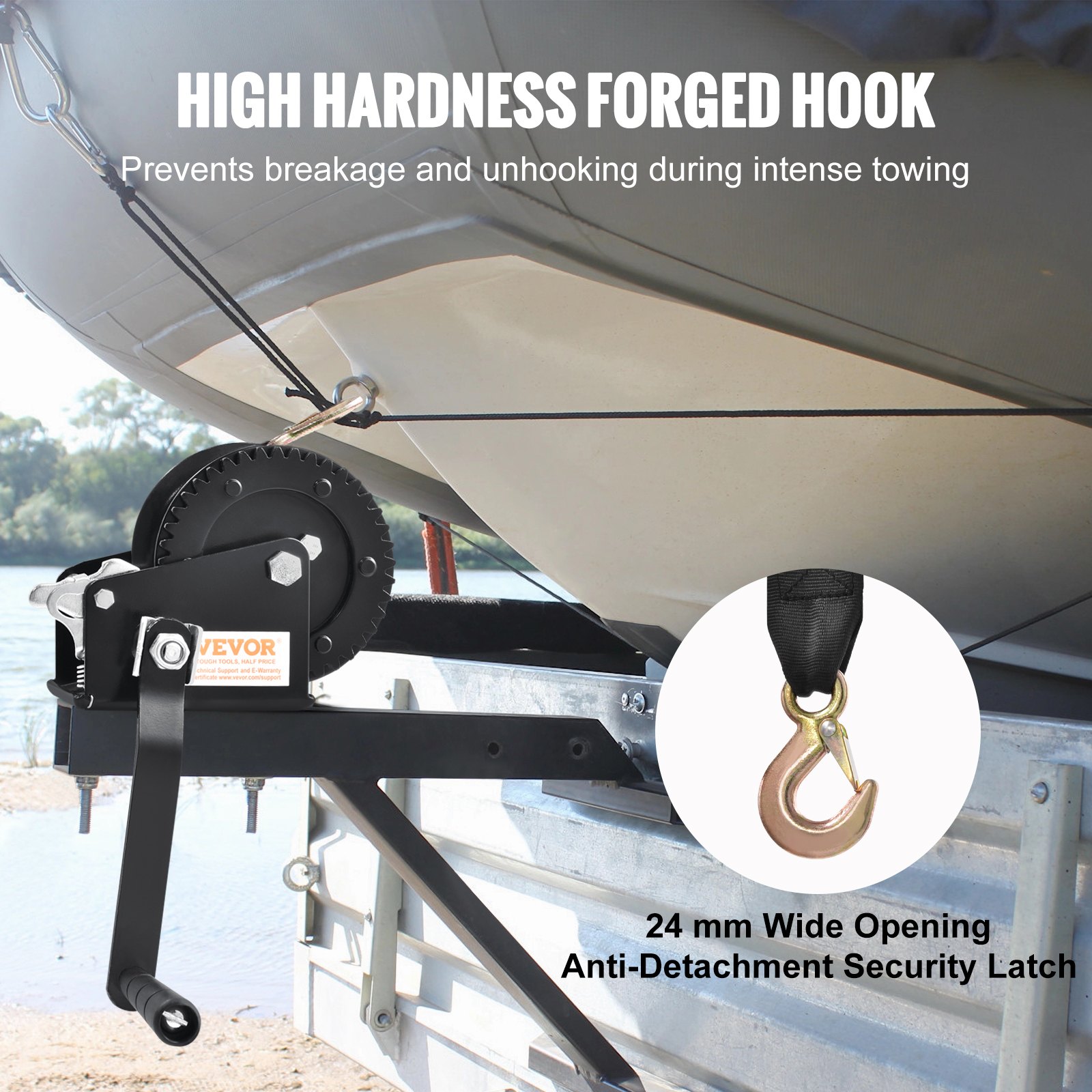 VEVOR Ručno vitlo 544,3 kg 208x138x149 mm, vitlo za brodove, 2-smjerna račva/1 brzina, ručna vitla s poliesterskim remenom od cca. 7 m s ergonomskom ručkom, ručna vitla s užetom za vozila i brodove