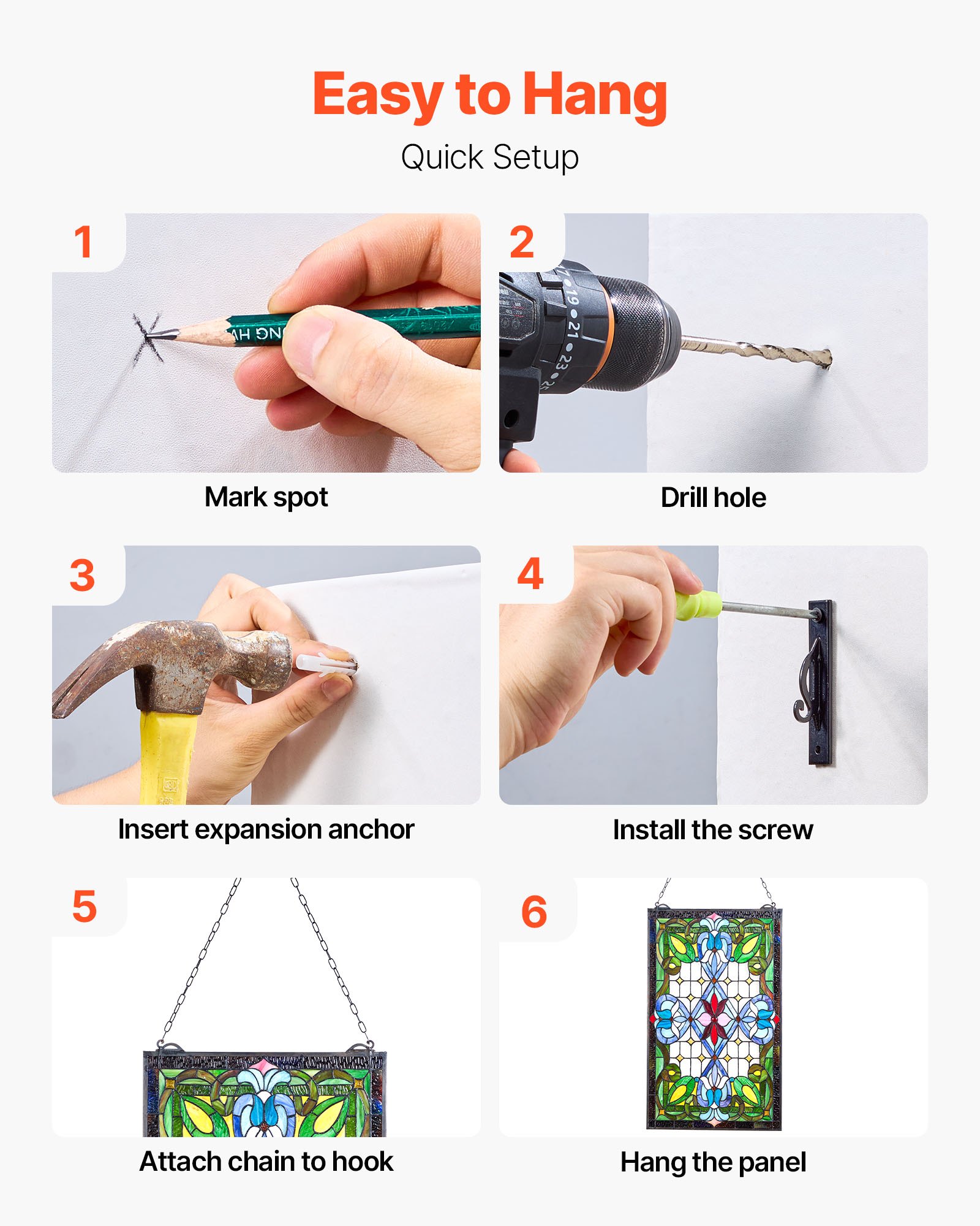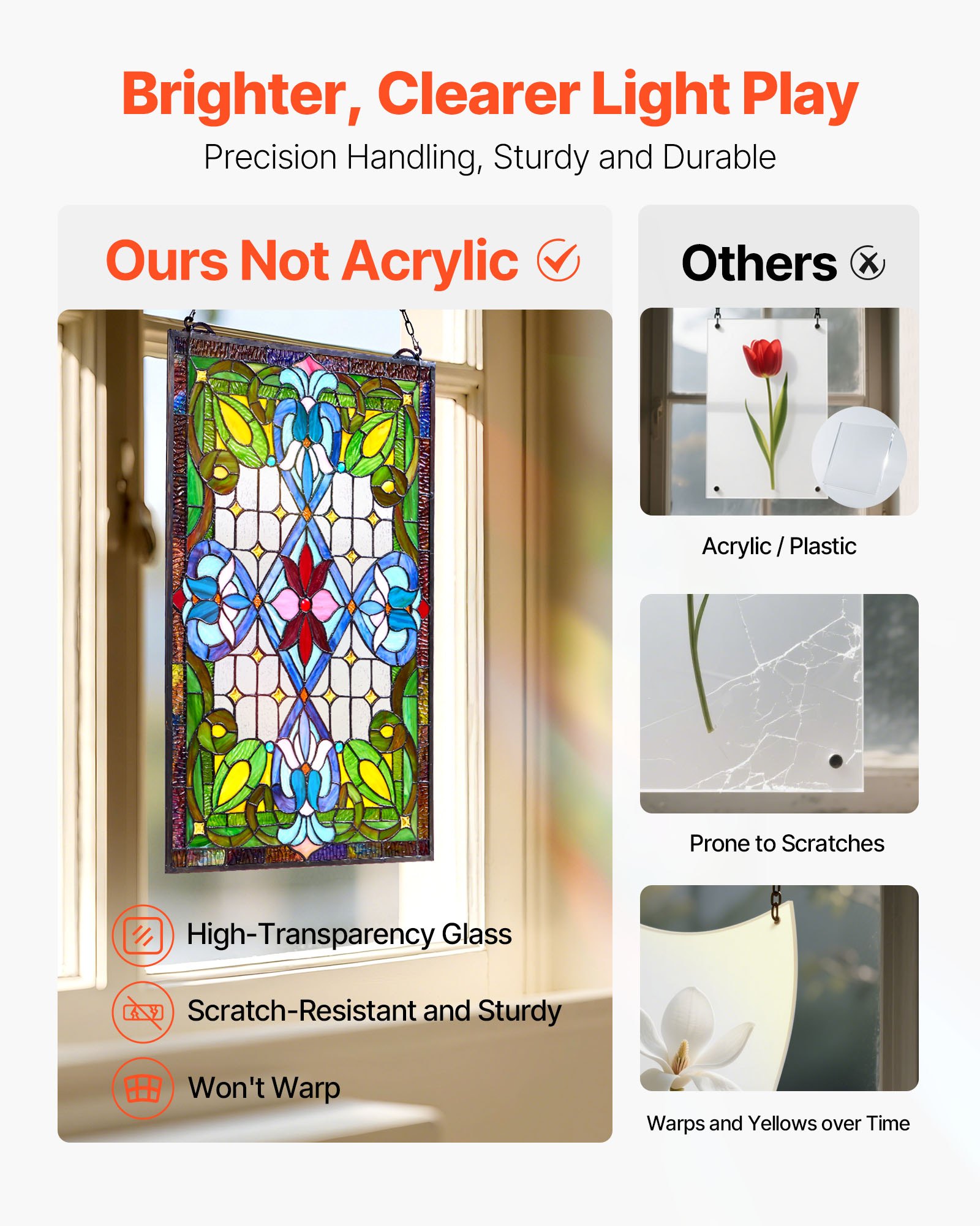 VEVOR Vitraj za prozor (731 x 433 mm) Viseći vitraj s lancem, Viseći vitraj u Tiffany stilu, Tradicionalni pravokutni vintage ukras za kuhinju i crkve