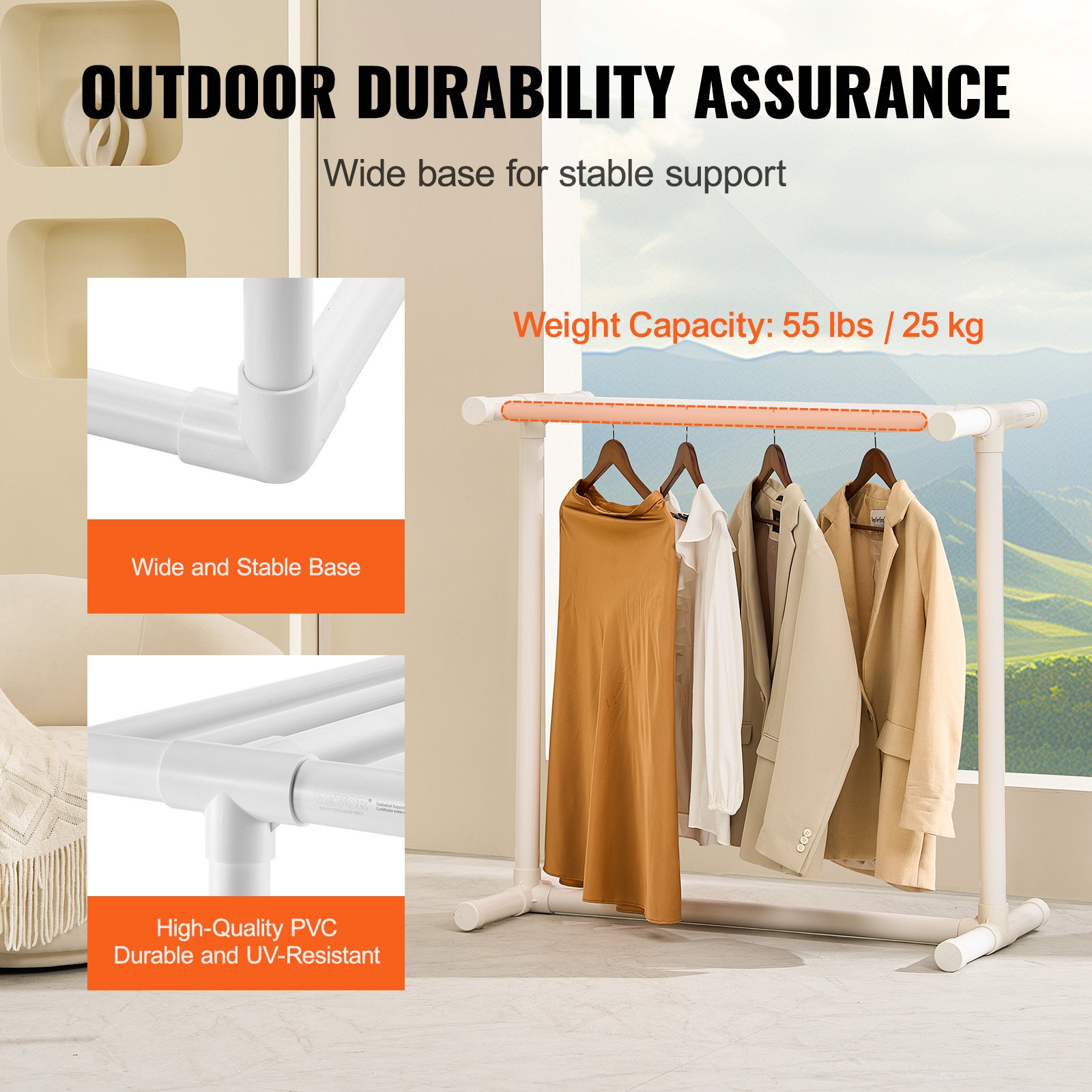 VEVOR vješalica za ručnike s 5 samostojećih šipki za ručnike, držač ručnika za spa i bazen, 102 x 46 x 102 cm, bijela, nosivost 25 kg, PVC vješalica za ručnike s 8 kopči za ručnike i 1 kukom