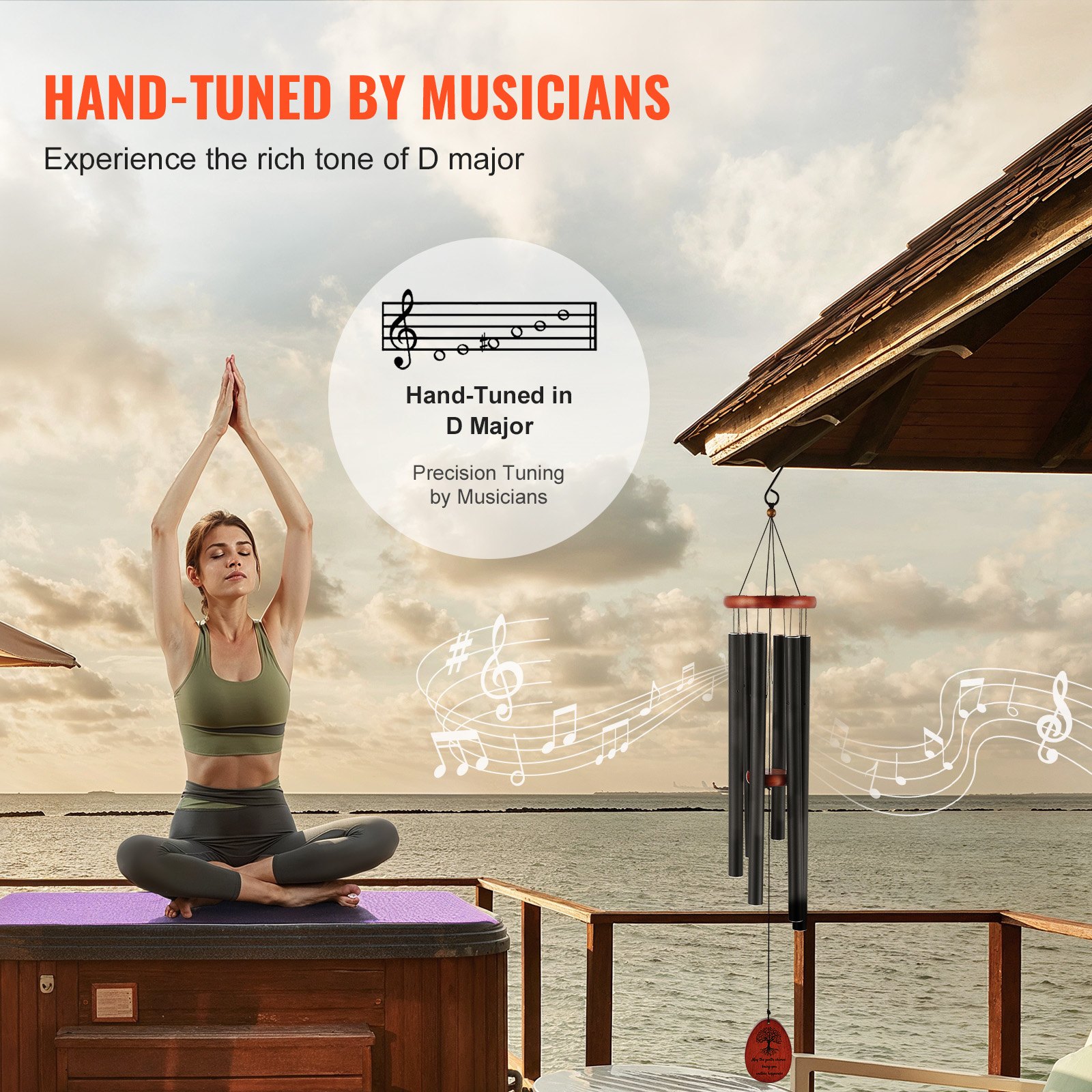 VEVOR vjetreno zvono, 1042 x Ø 153 mm, vjetreno zvono dubokog tona i 6 cijevi, jedinstveno veliko vjetreno zvono za spomen na godišnjicu, odličan vanjski ukras za terasu, trijem, vrt i dvorište, crno