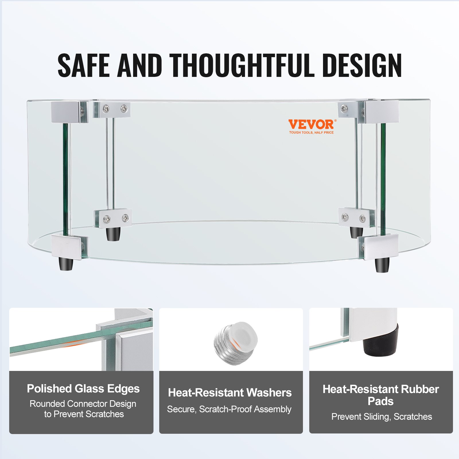 VEVOR Okrugli stakleni zaslon za kamin 740 x 214 mm, dodatak za stol za kamin, prozirni zaslon za plamen od kaljenog stakla za propan, vanjsku terasu, dvorište