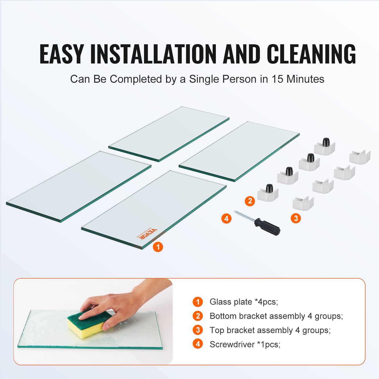 VEVOR Vjetrobran za plinsko ognjište za kvadratni stol s vatrom, 493 x 493 x 191 mm, Prozirno kaljeno staklo za kamine, Zaštita od kvadratnog stakla debljine 8 mm, Staklena ploča s kaljenim