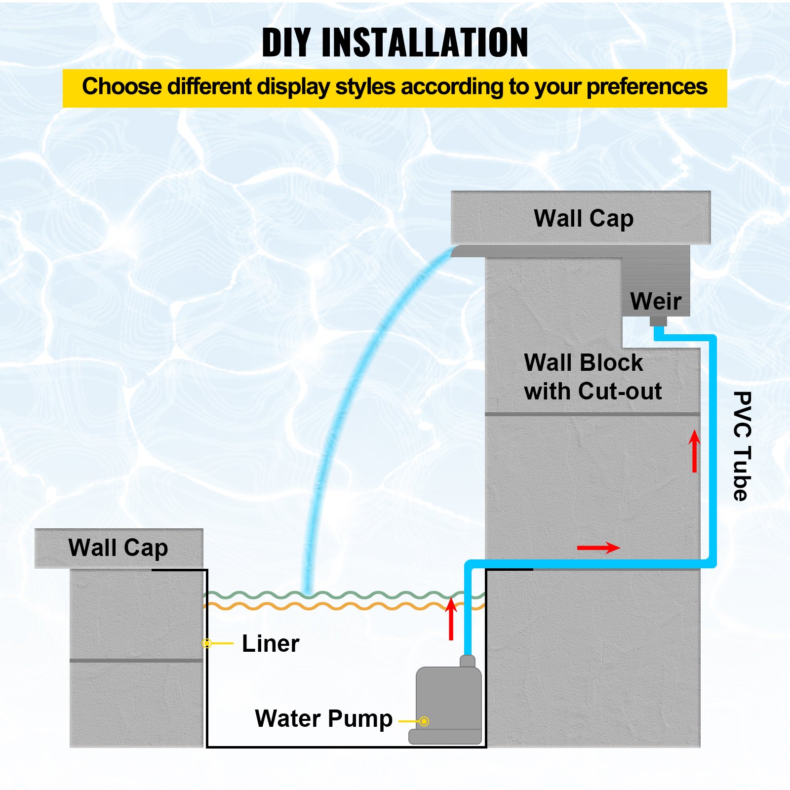 VEVOR Vodopadna fontana za bazen, 11,8 x 4,5 x 3,1 inča, Pravokutna fontana od nehrđajućeg čelika, Ribnjak za plivanje, Kaskada s vodopadnim lopaticama