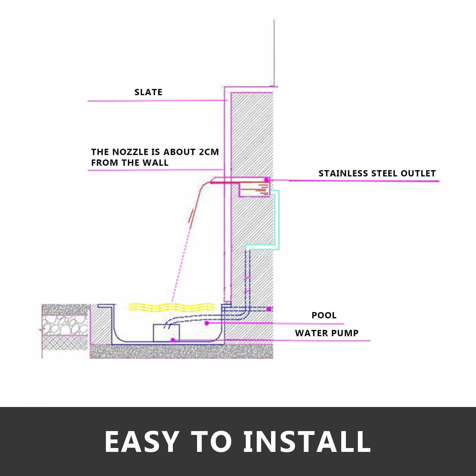 VEVOR Vodopadna fontana za tuširanje s LED rasvjetom, 42 x 11 x 7,6 cm, fontana za bazen, 3,8 cm, fontana za vodu, 1,8 cm, ukras za vrtni ribnjak