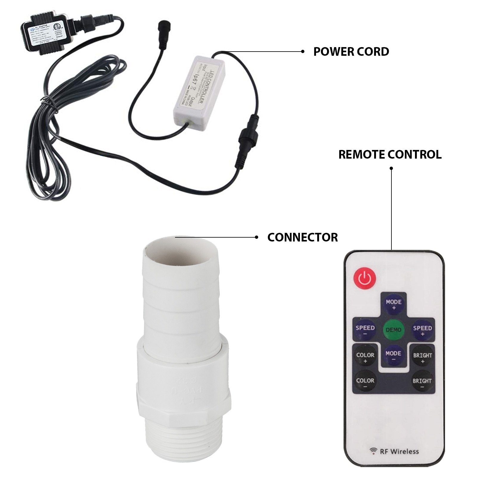 Boja: srebrna, PVC, unutarnji promjer navoja: 32 mm, Materijal: nehrđajući čelik (SS 304), unutarnji promjer priključka: 32 mm, Napajanje: 220V 10W RGB svjetlo, duljina priključka: 22 mm, ukupna veličina: 45 x 11,43 x 7,8 cm (Š x D x V)