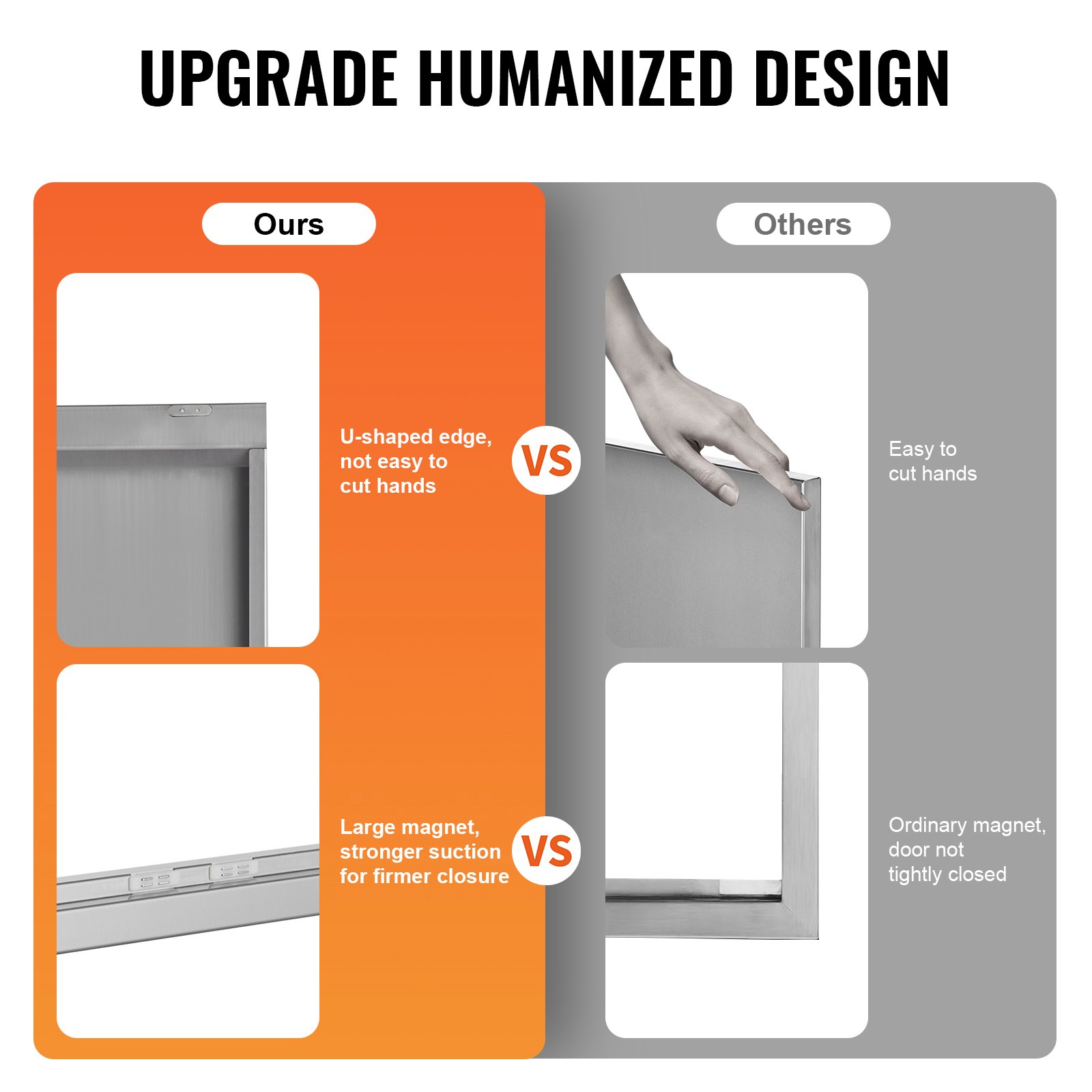 VEVOR vratašca za roštilj, 762 x 532 x 45 mm, dvostruka vanjska kuhinjska vrata, vrata od nehrđajućeg čelika za ugradnju u zid, vertikalna zidna vrata s uvlačnim ručkama, za otok s roštiljem, stanicu za roštilj, vanjski ormarić itd.