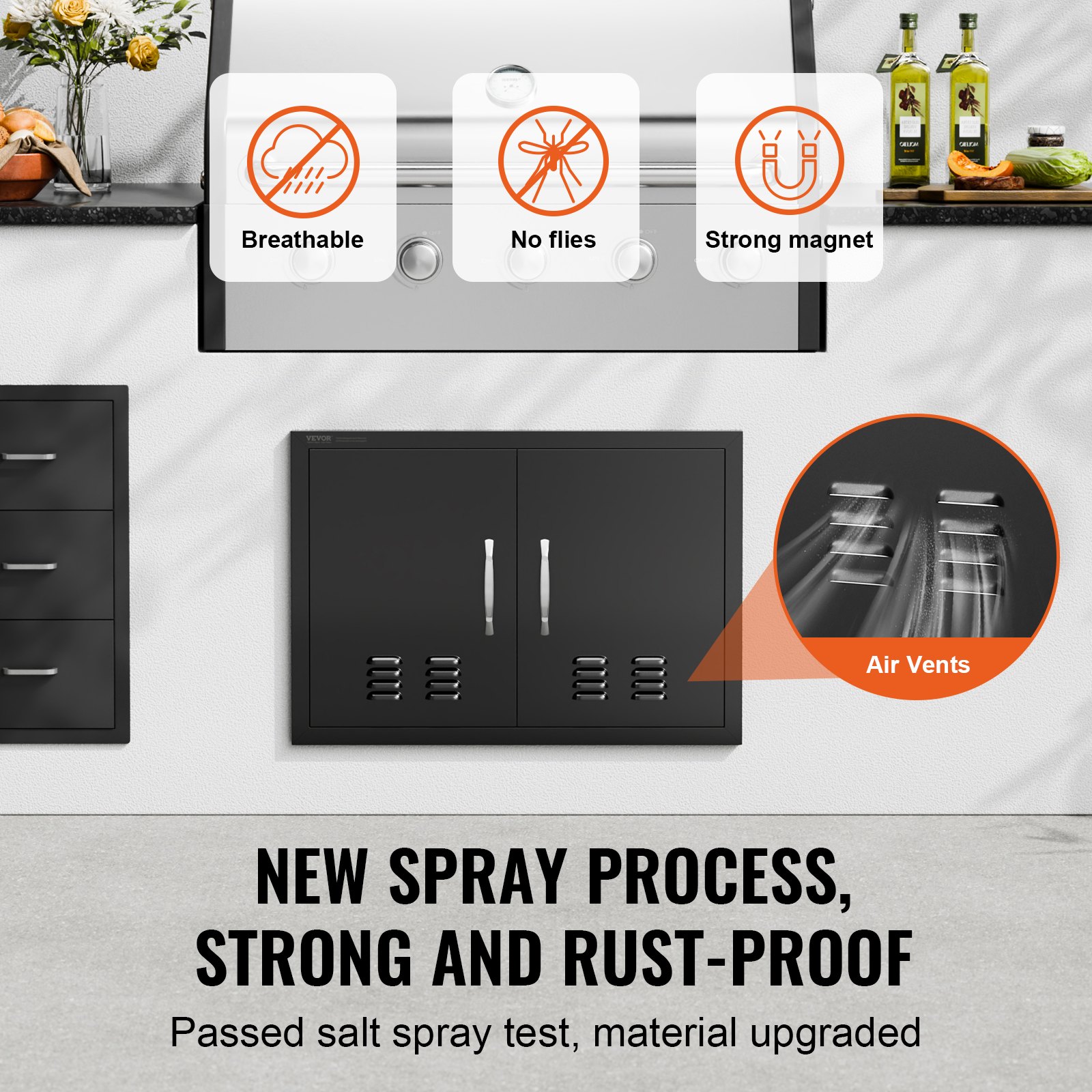 VEVOR vratašca za roštilj, 762 x 533 x 46 mm, dvostruka vanjska kuhinjska vrata, vrata s hladnom pločom za ugradnju, vertikalna zidna vrata s ručkama i ventilacijskim otvorima, za roštilj otoke, roštilj stanice itd.