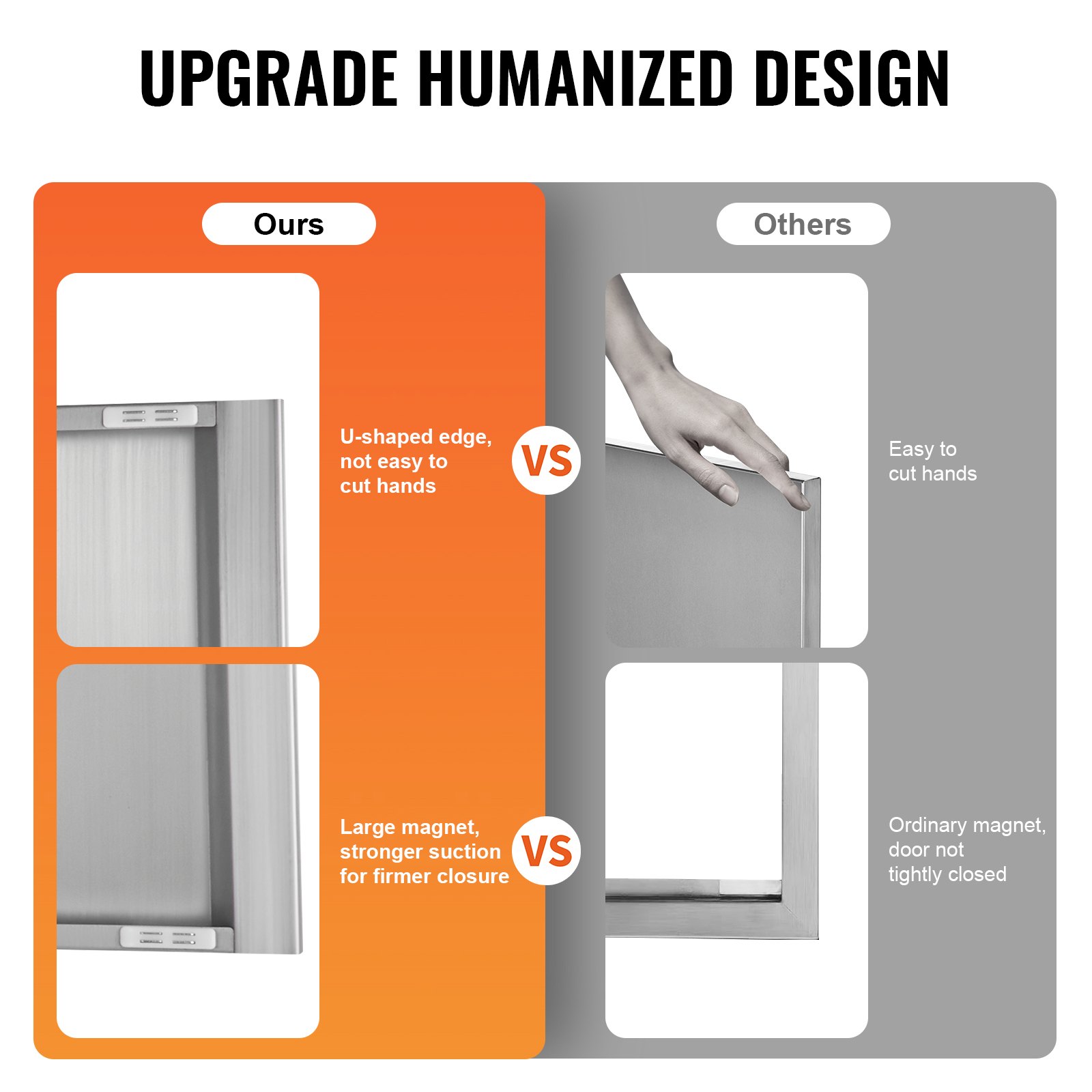 VEVOR vrata za roštilj, 914 x 534 mm, dvostruka vanjska kuhinjska vrata, vrata od nehrđajućeg čelika za ugradnju u zid, vertikalna zidna vrata s uvlačivim ručkama, za otok s roštiljem, stanicu za roštilj, vanjski ormarić