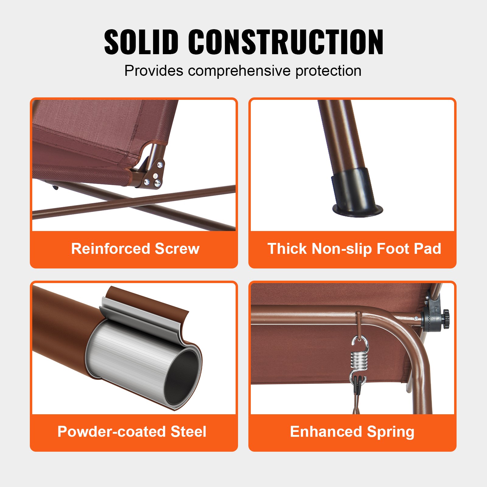 VEVOR vrtna ljuljačka za 3 osobe, vanjska vrtna ljuljačka s podesivim krovom, naslonima za ruke, Teslin tkaninom i okvirom od legiranog čelika za balkon, dvorište, vrt, uz bazen, smeđa