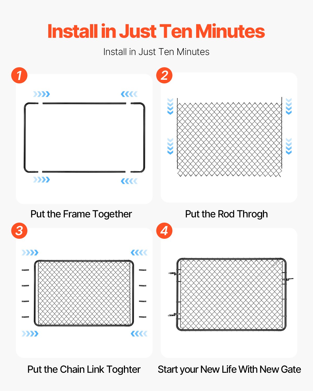 Promjer okrugle cijevi: 3,2 cm, Veličina mreže: 2,5 x 2,5 in / 6,3 x 6,3 cm, Prikladna veličina vrata: Š 2,2-6 ft x V 6 ft / Š 0,67-1,83 m x V 1,83 m, Težina proizvoda: 11,00 kg / 24,25 lbs, Debljina stijenke (prije premaza): 1,2 mm / 0,05 in, Glavni materijal: Metal Q235, Boja: Pocinčano + Crni PVC, Broj modela artikla: HXGATE-002, Dimenzije vrata (D x V): 72 x 48 inča / 183 x 122 cm, Promjer žice (lančanica, nakon premazivanja): 3,3 mm / 0,13 inča, Dimenzije proizvoda: Duljina: 1835 mm / 72,24 inča, Visina: 1220 mm / 48,03 inča
