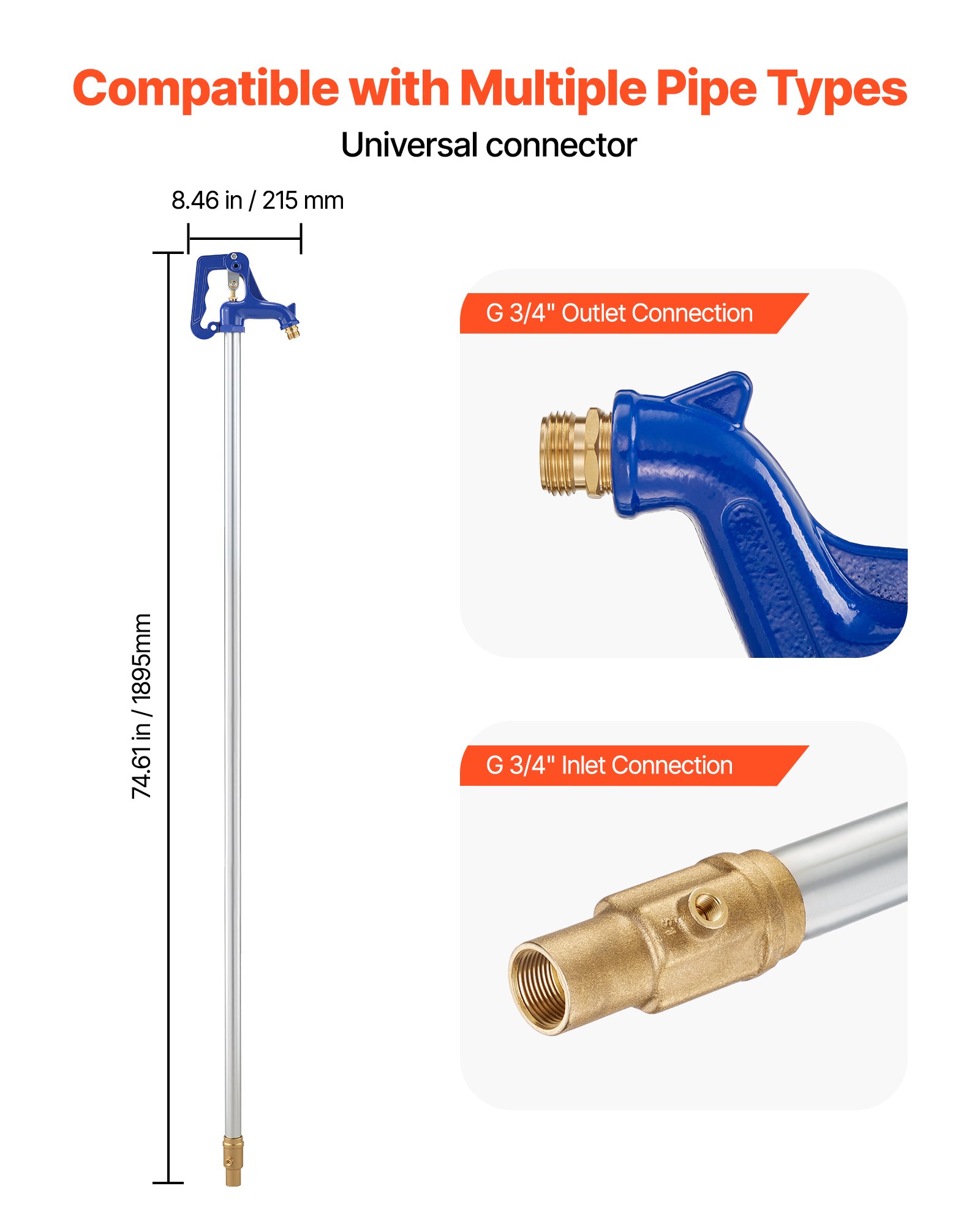 VEVOR vrtni hidrant otporan na smrzavanje, 1895 mm, vanjska slavina s dubinom ukopa 1219,2 mm, priključkom za cijevi i crijevo G 3/4 inča, hidrant bez olova za navodnjavanje vrta i… Farma