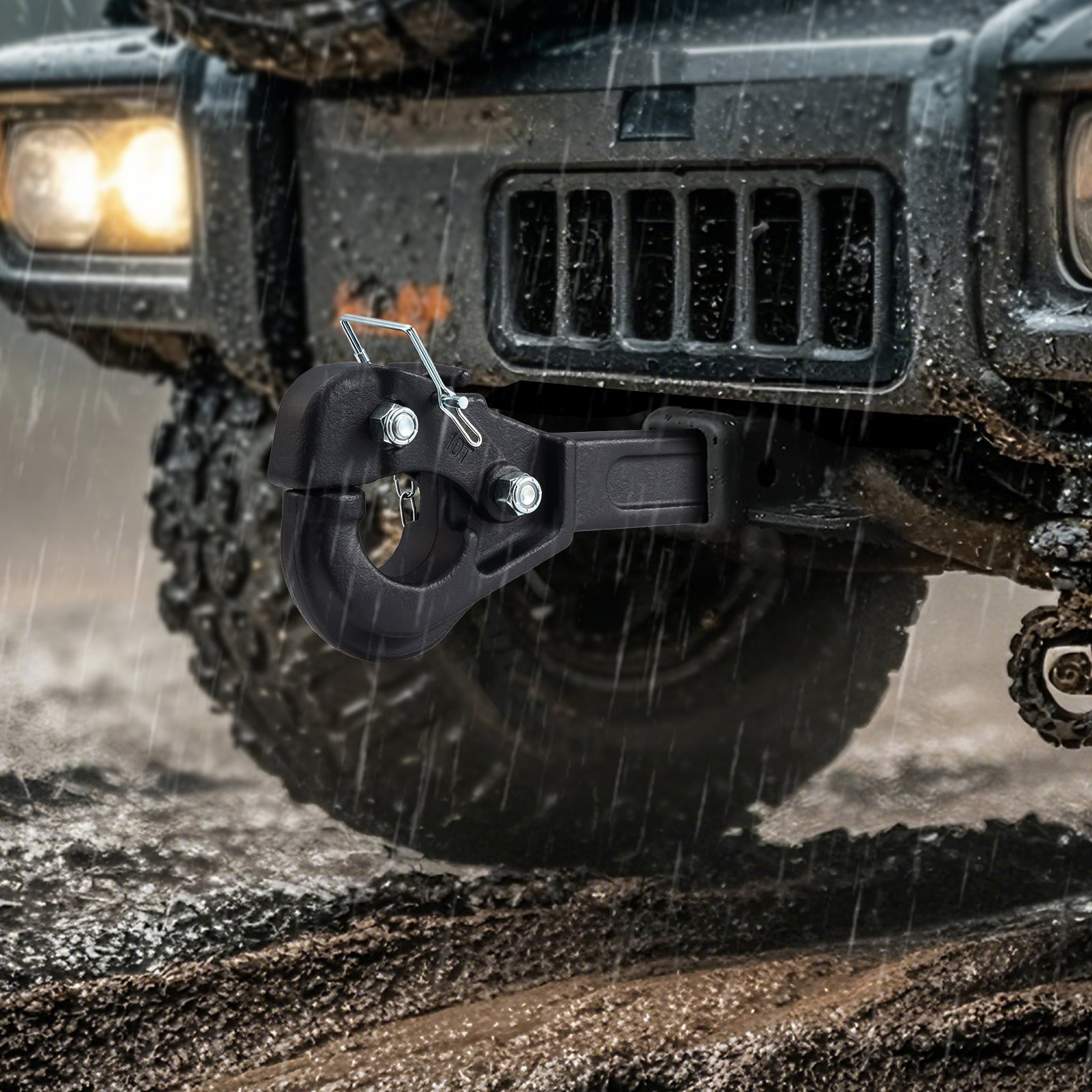Vučna kuka, nosivost vuče 9070 kg, prihvatnik s vijčanim spojem za vučne kuke od 50,8 mm, prikladno za prstenove okvira od 63,5-76,2 mm, crni praškasti premaz, za razne prikolice