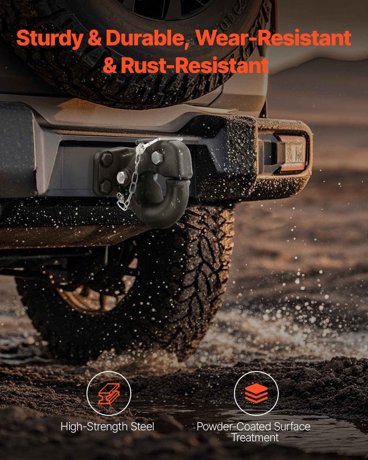 VEVOR vučna kuka, vučna snaga 13T, vučna kuka odgovara prstenovima okvira 63,5-76,2 mm s kompletom za montažu, crni praškasti premaz, otporno na habanje, pogodno za razna vozila
