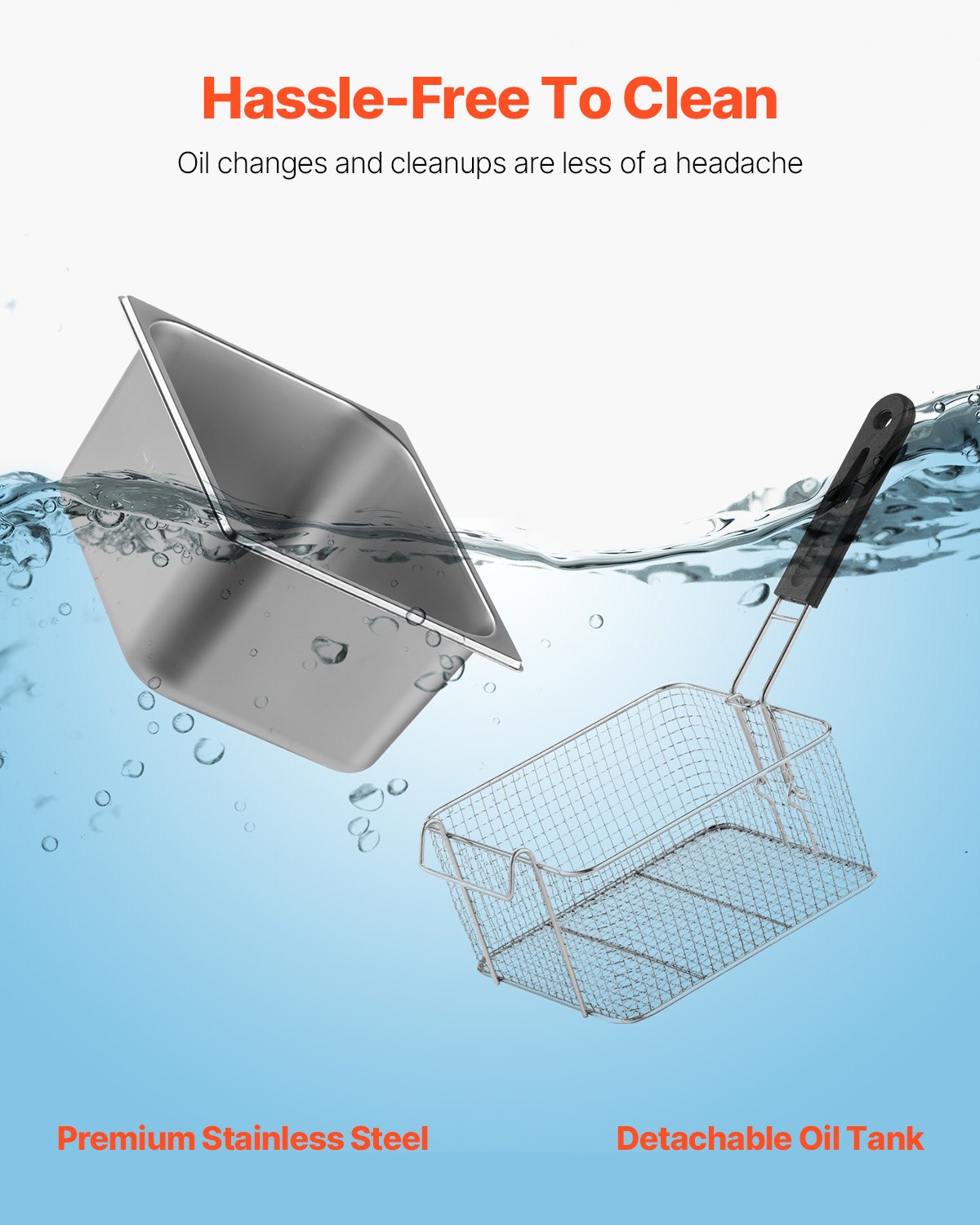 Ukupne dimenzije: 560 x 460 x 310 mm, Maksimalni kapacitet ulja: 5,5 L + 5,5 L, Kapacitet: 6 L x 2, Materijal: Nehrđajući čelik, Maksimalna snaga: 5000 W, Veličina spremnika: 295 x 235 x 150 mm, Vanjske dimenzije košare: cca. 180 x 205 x 100 mm, Bruto težina: 10 kg (21,5 lbs), Raspon temperature: 60 – 200° C, Konstantna snaga: 3400 W