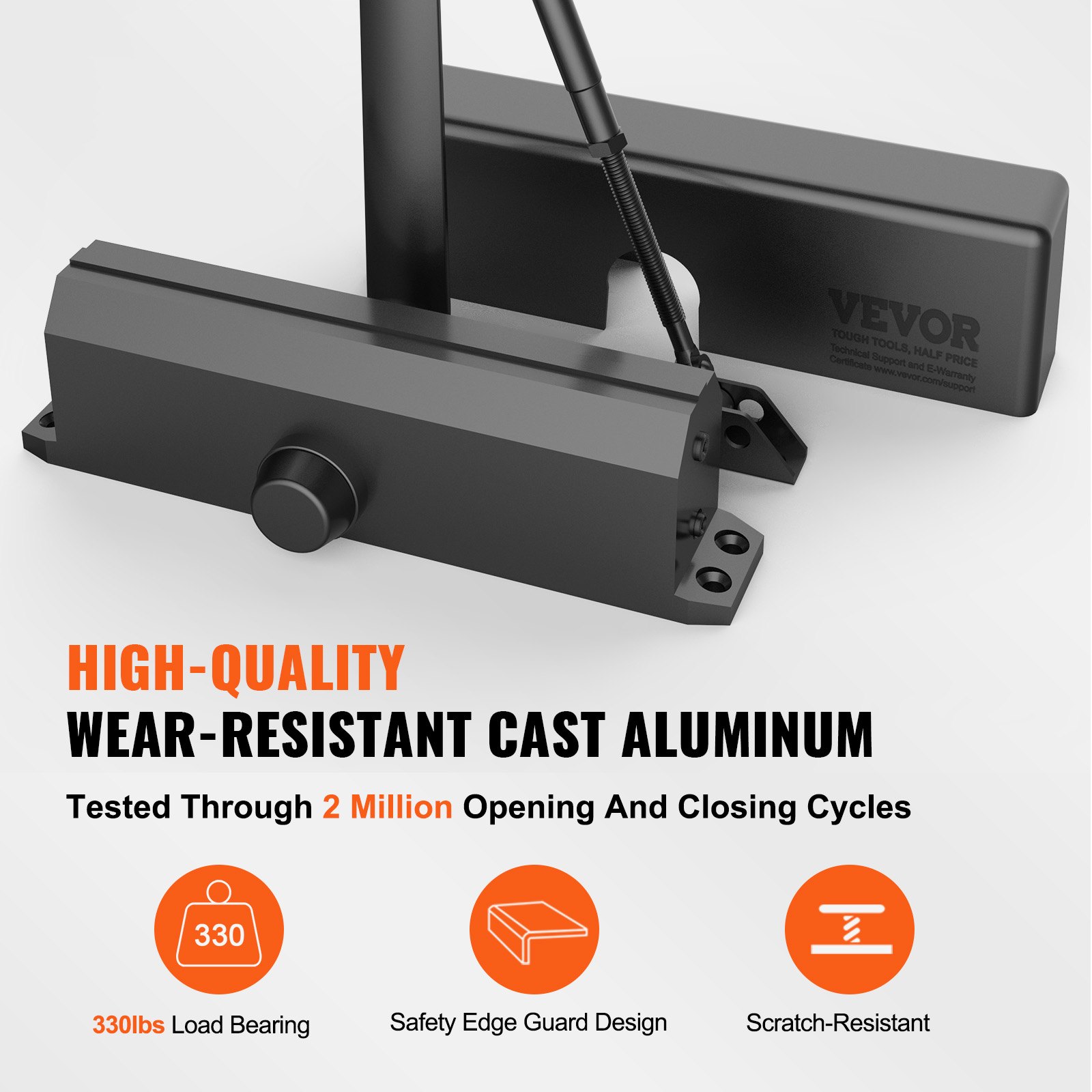 VEVOR automatski zatvarač vrata za komercijalnu ili stambenu upotrebu, za vrata težine do 150 kg, zatvarač vrata s šipkom i hidrauličkim odbojnikom, kućište od lijevanog aluminija, crna boja