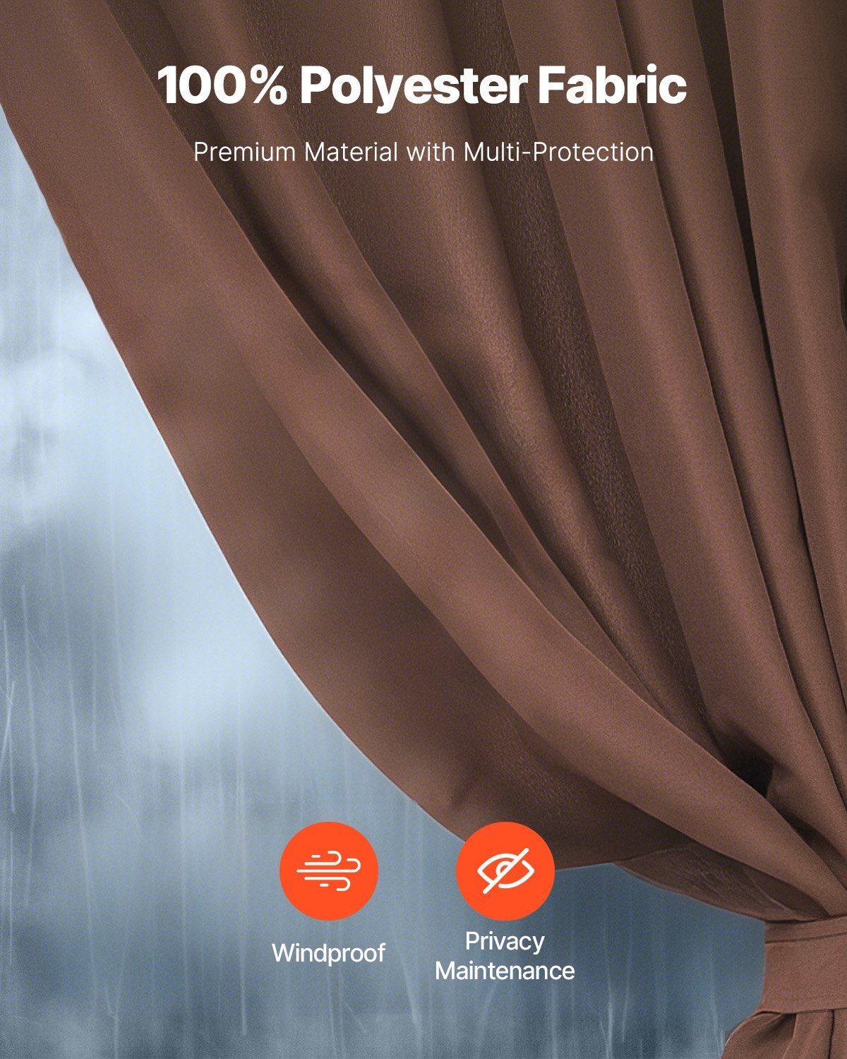 VEVOR Zavjesa za terasu, 284x284x211 cm, Zavjese za privatnost s 4 bočna panela i patentnim zatvaračima, Zavjese za zaštitu od sunca visoke 2 m kao zamjena za nadstrešnicu za terasu, Samo zavjese, Smeđa
