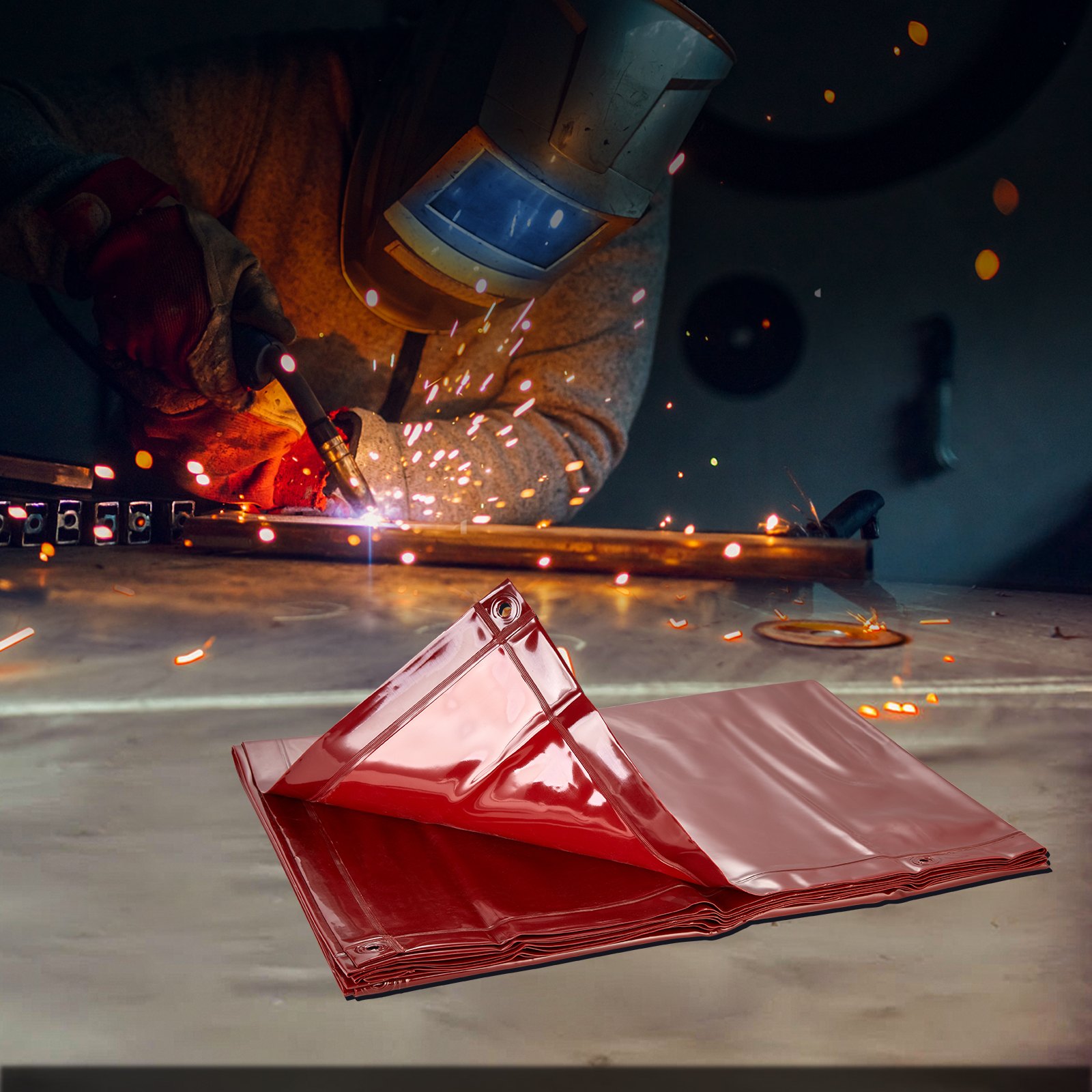 VEVOR zavjesa za zavarivanje 1,8 x 2,4 m Zaštitna zavjesa za zavarivanje od vinilne zaštite otporne na plamen s 4 okretna kotačića i 6-razinskom UV zaštitnom dekom za zavarivanje, crvena