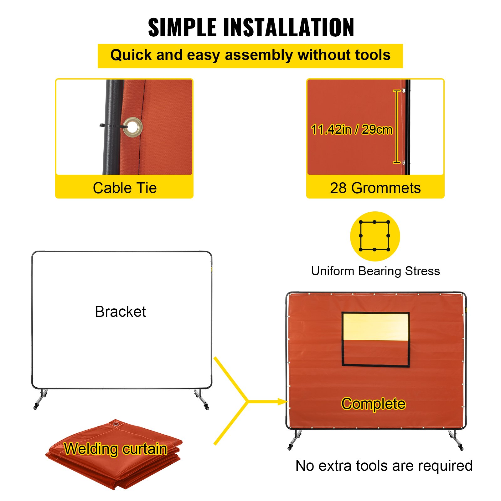 VEVOR zavjesa za zavarivanje 1,83 m x 2,44 m pokrivači za zavarivanje, crvena prostirka za zavarivanje, 8 kg toplinski zaštitni pokrivač, vatrootporna podloga debljine 0,5 mm, protupožarna prostirka veličine prozora 90 cm x 38 cm za radionice za zavarivanje