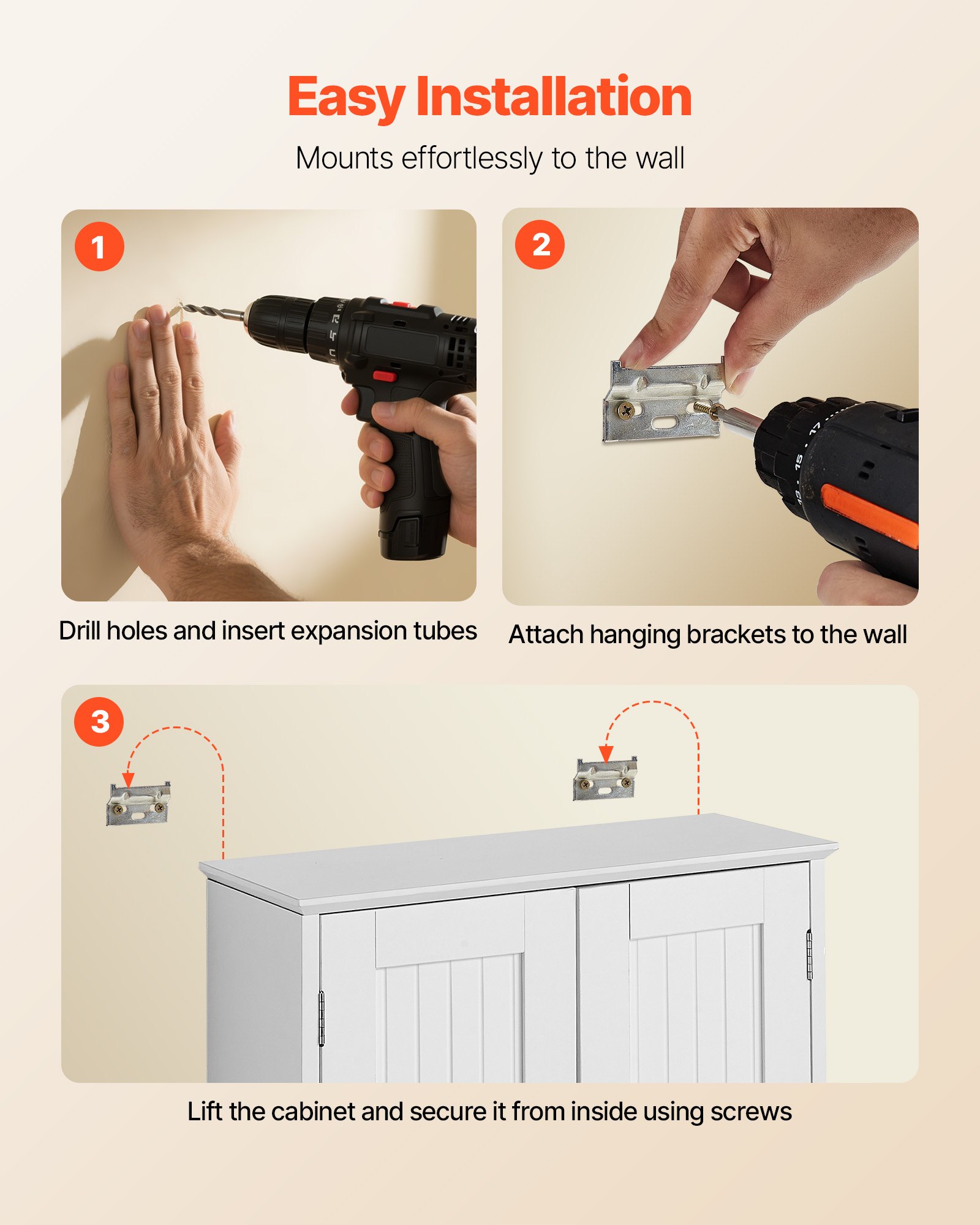 VEVOR Zidni ormarić za kupaonicu, ormarić za lijekove (3 razine) s 2 vrata i podesivim policama, zidni ormarić za pohranu iznad WC-a, viseći ormarić za kuhinjski WC, bijeli