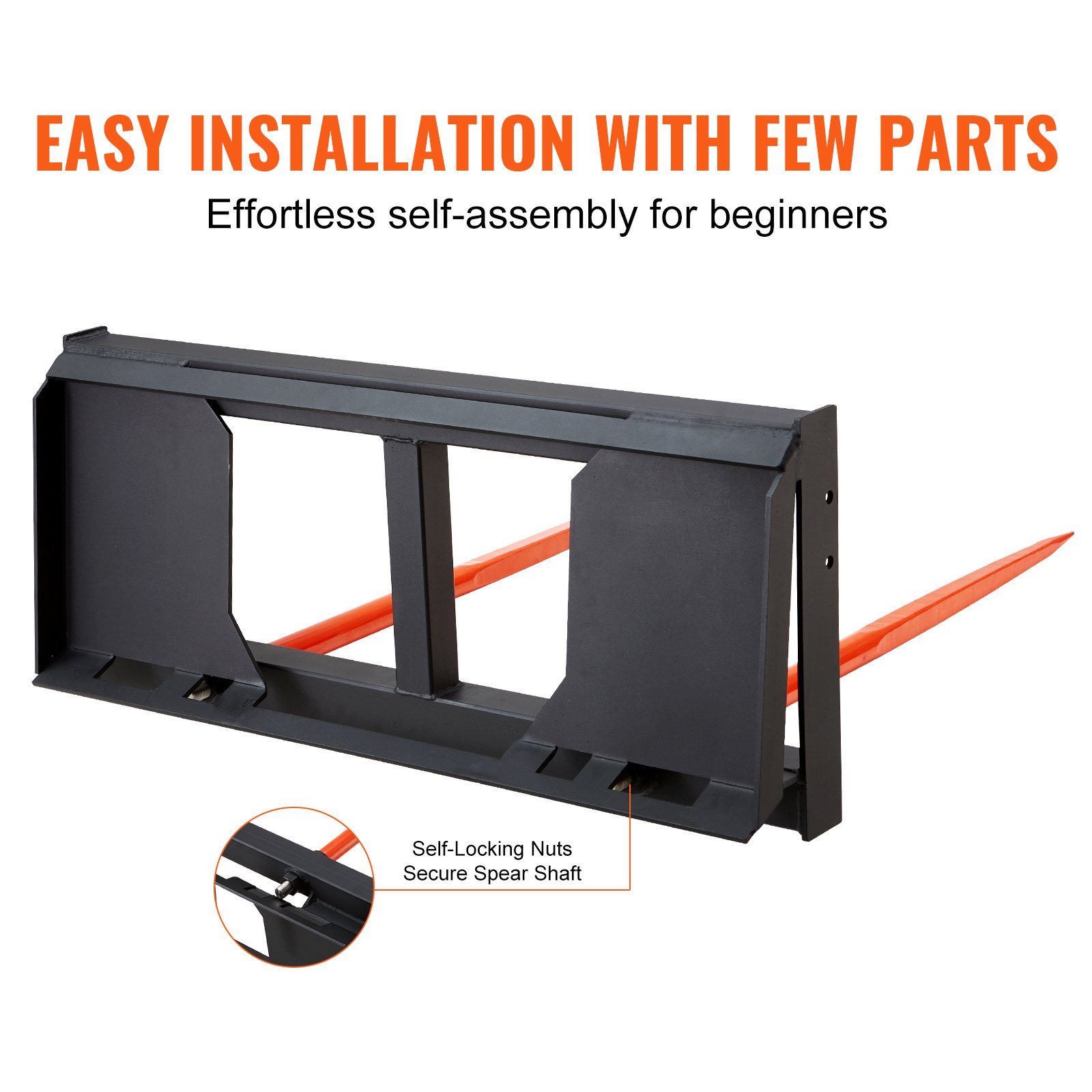 VEVOR Vilice za prednji utovarivač Vilice za bale s opružnim čeličnim šiljcima Vilice za transport bala s dva šiljka od 124 cm Teške vilice kompatibilne s kliznim utovarivačima i traktorima